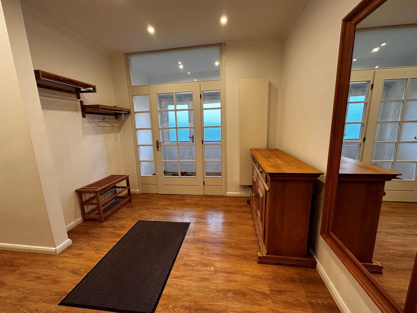 Durch den Gartenausgang kommt man auf eine Terrasse mit kleinem umbauten Garten zur alleinigen Nutzung.