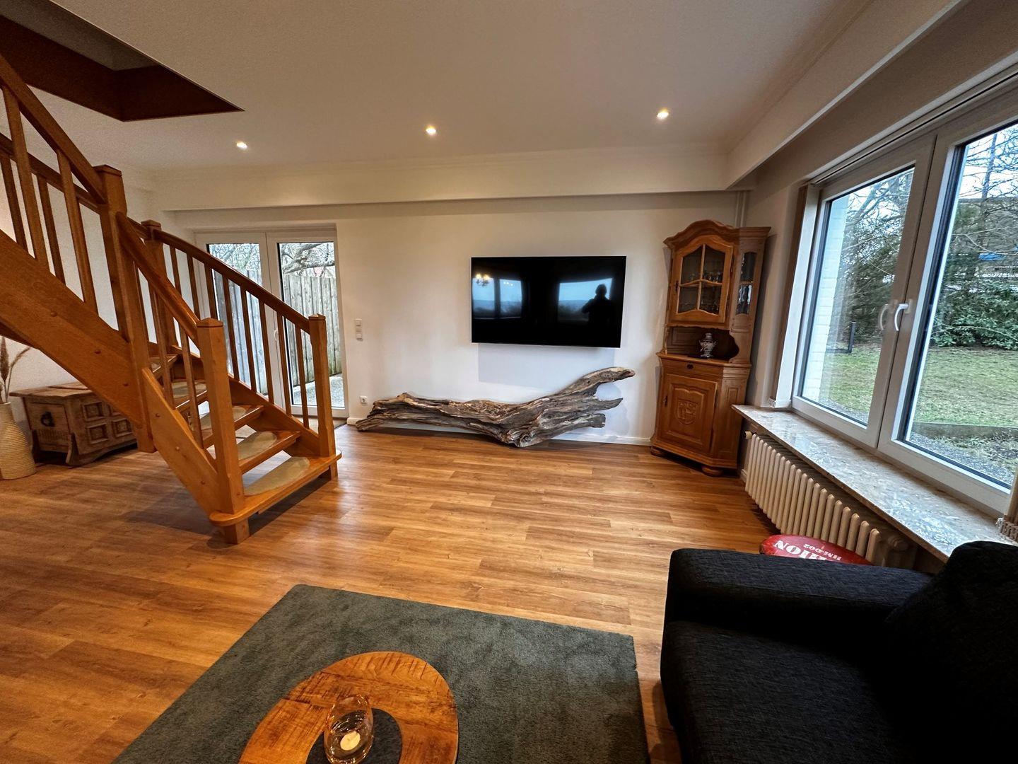 Haushälfte in einzigartiger Lage am Wasser. Vom Garten und aus dem Haus hat man einem spektakulären Ausblick nach Föhr und Sylt und das Wattemmeer.