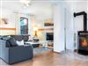 Unterer Bereich: liebevoll eingerichtets großes helles Wohnzimmer mit gemütlicher Sitzecke und Kamin. Offener Küchenbereich mit Esstisch, 4- Platten Herd, Backofen, Kaffeemaschine, Wasserkocher, Toaster, Kühlschrank mit Gefrierfach. Bad mit Dusche und WC sowie ein separates Gäste WC.