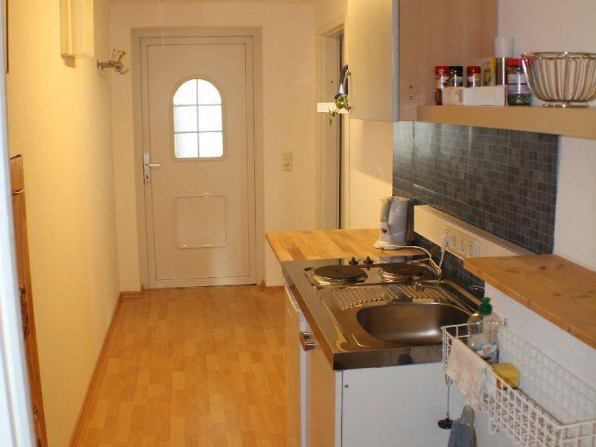 Kombinierter Schlaf- Wohnraum mit separater Küche und Dusche/WC.