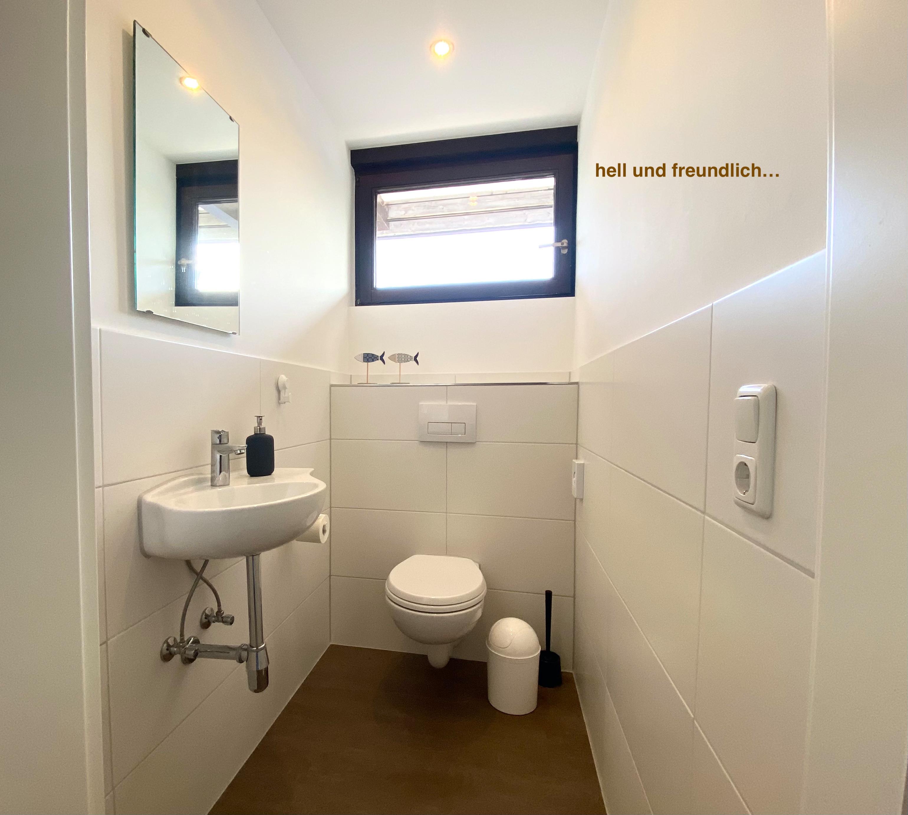 Ein geräumiges Duschbad mit Fenster ist ebenso vorhanden wie ein getrenntes Gäste-WC. WLAN, SAT-TV, Internetradio, die Möglichkeit Musik vom eigenen Endgerät (z. B. Handy) zu streamen, ein Blu-ray-Player der auch DVDs und CDs abspielen kann, ein Tripp-Trapp, diverse Bücher und Spiele runden die Ausstattung ab.