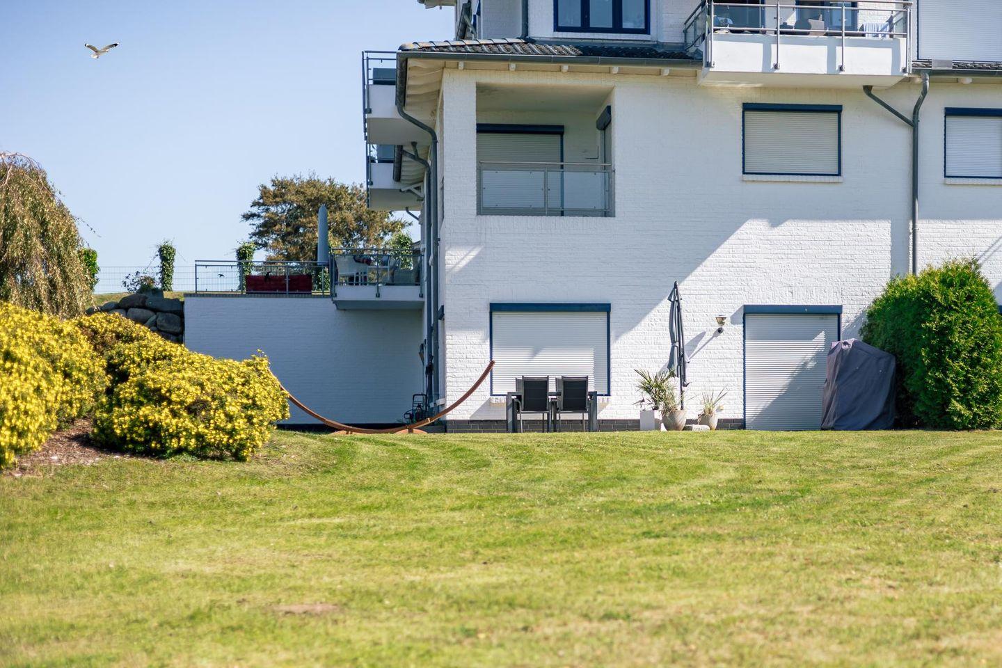 Ein echtes Highlight ist die große möblierte Terrasse mit Grillmöglichkeit. Hier kannst du draußen essen, entspannen oder einfach in deinem Strandkorb sitzen und den Blick über die Ostsee schweifen lassen – Urlaub pur direkt vor der Tür.