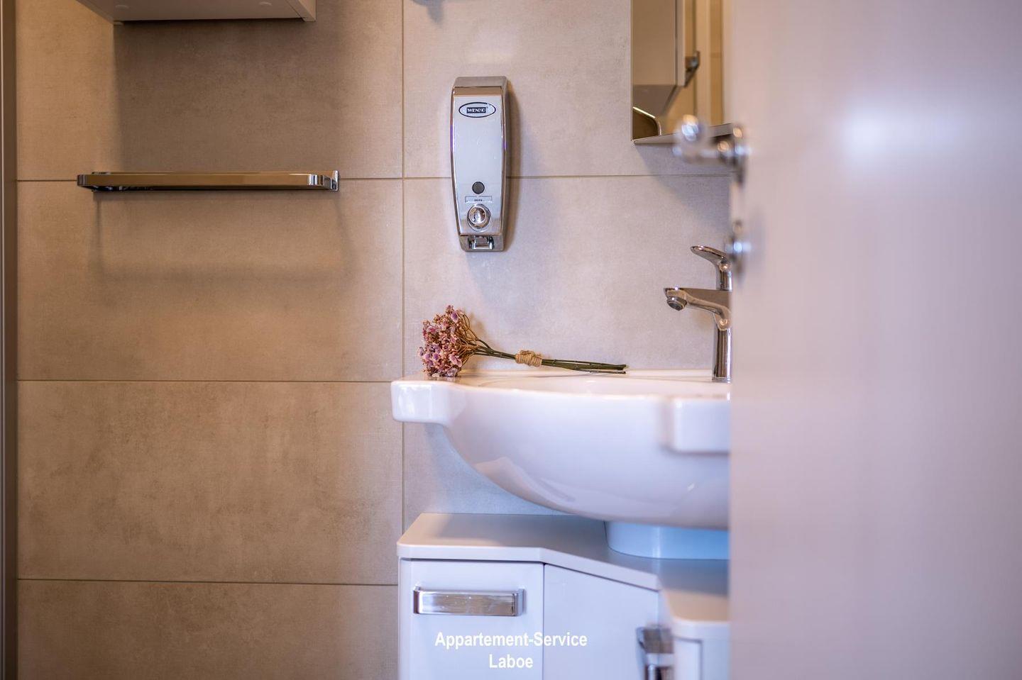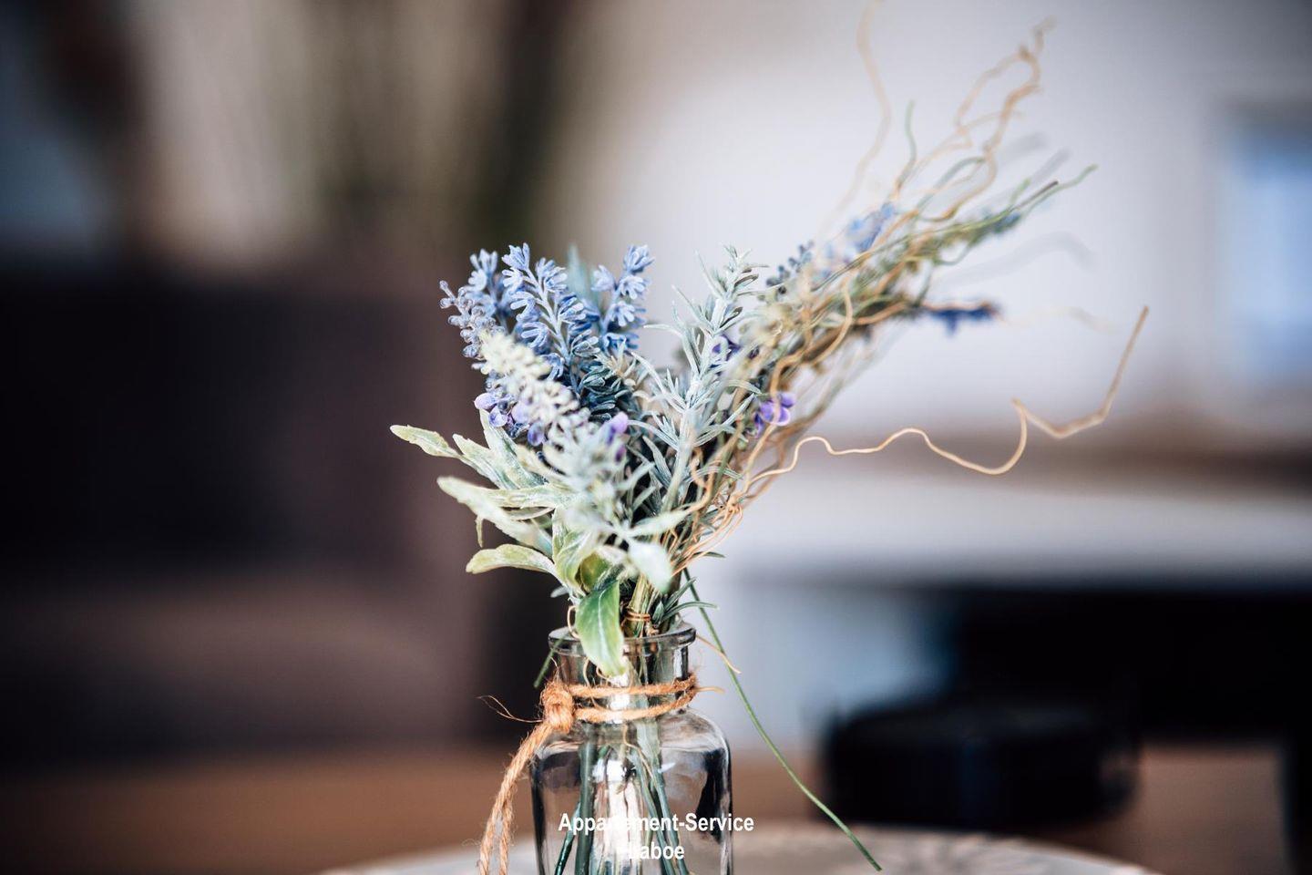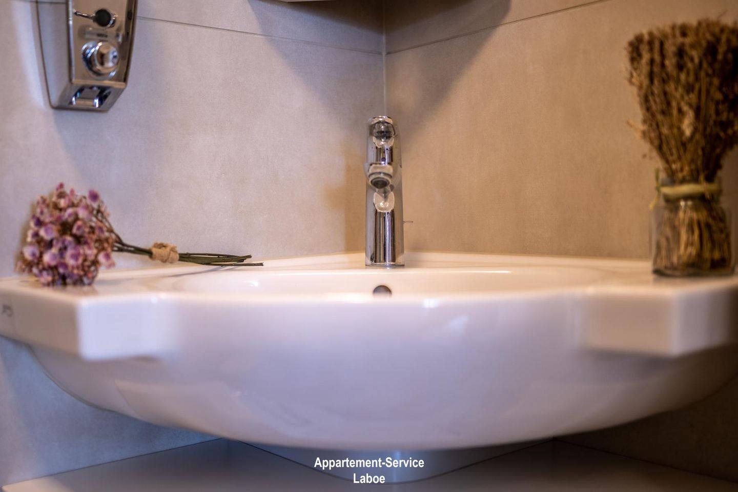 Diese mit Liebe zum Detail maritim, modern und hochwertig eingerichtete Wohnung besticht durch ihre traumhafte Lage und Weitsicht! Sie bietet bis zu 3 Personen Platz auf fast 40 m² und befindet sich im 2. Obergeschoss. Hervorzuheben sind die bodentiefen Fenster mit französischen Balkonen, die dem Appartement viel Licht und Weite verleihen. Das Herzstück der Wohnung EdelStein ist der offene Wohn- und Essbereich mit seinem hochwertigen Bodenbelag in Eiche-Optik, ausgestattet mit massiven Echtholz-Möbeln, einem modernen 4K Smart-TV und einem eleganten Schlafsofa, welches sich durch einfache Handgriffe in einen weiteren Schlafplatz verwandeln lässt.