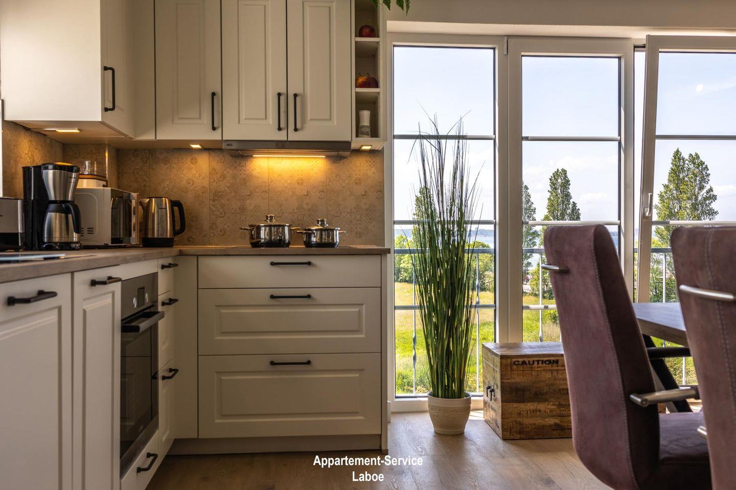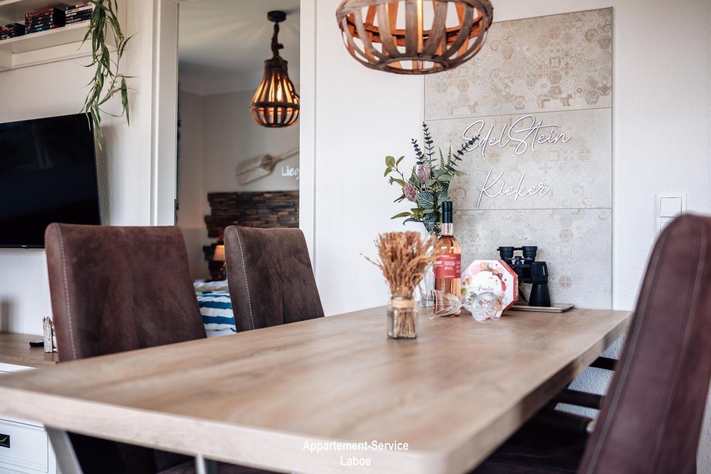 FeWo EdelStein: Ca. 40?m² große, 2023 komplett renovierte 2-Zimmer-Wohnung im 2. OG mit traumhaftem Blick auf Ostsee, Förde und Natur. Für bis zu 3 Personen. Wohnbereich mit Schlafsofa, Essplatz und voll ausgestatteter Wohnküche mit Meerblick. Schlafzimmer mit Doppelbett und TV. Bodentiefe Fenster mit franz. Balkonen. WLAN, Smart-TV, Tiefgaragenstellplatz, abschließbarer Fahrradkeller. Direkt am Naturstrand in Stein, ca. 1,5?km bis Laboe. Nichtraucher, keine Haustiere.