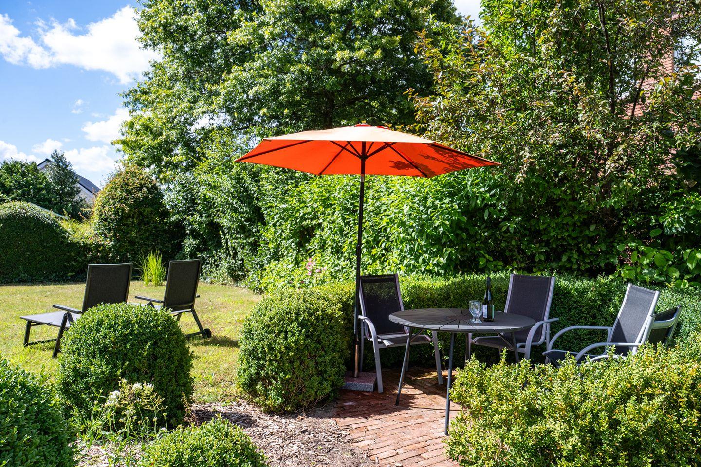 Die **Terrasse(n)** erreichst Du über die Haustreppe ins Erdgeschoss. Sie stehen den Urlaubsgästen beider Wohnungen zur Nutzung zur Verfügung.