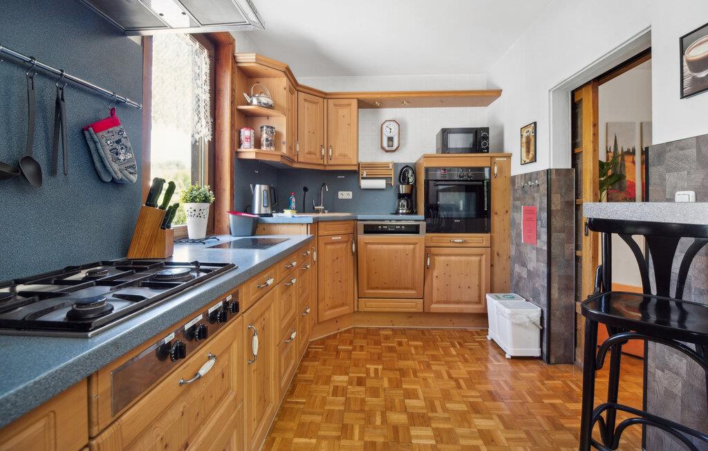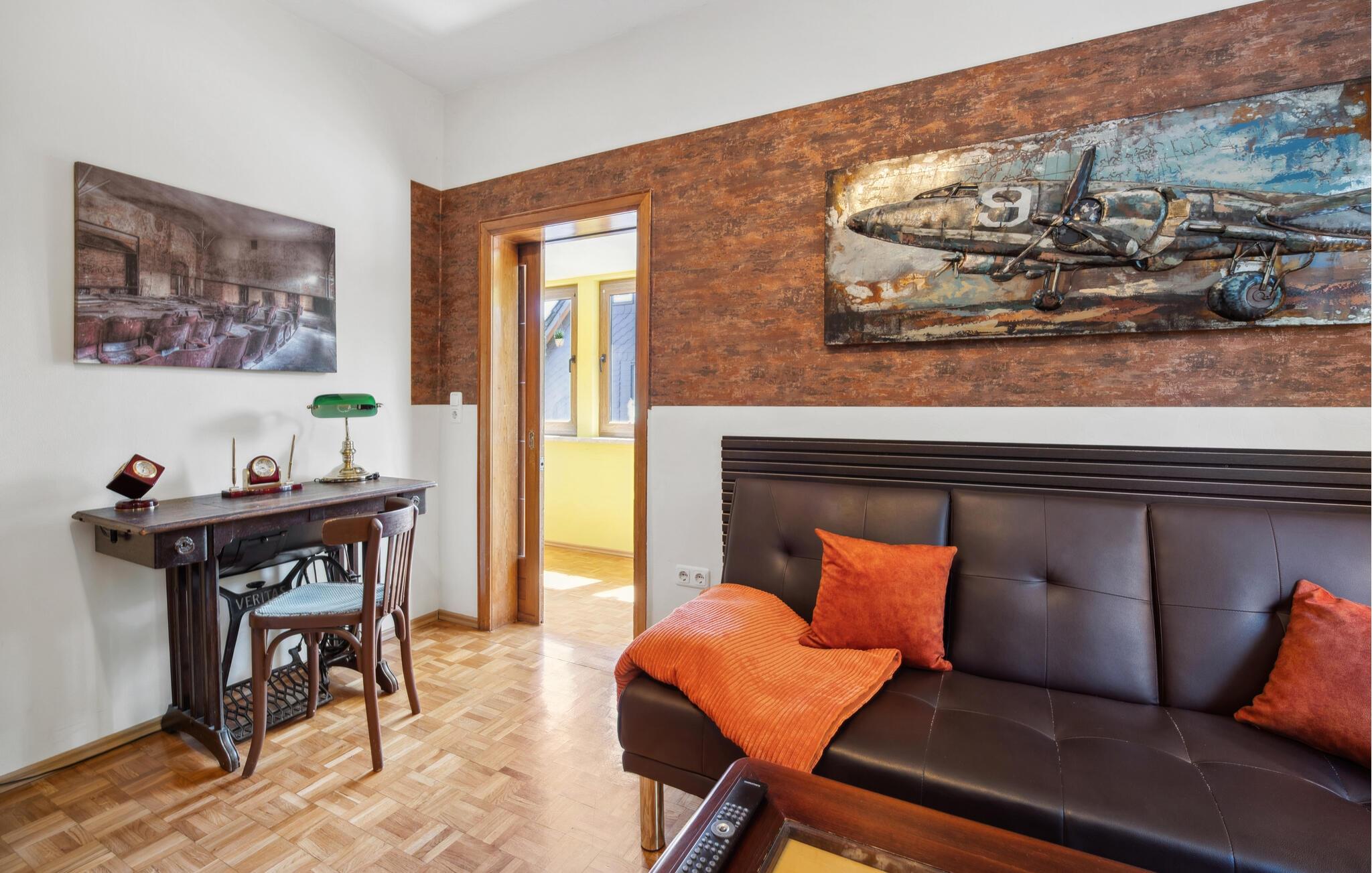 Slap af i den lyse stue med en behagelig sofa og stilfulde detaljer som murværk og vægkunst. Brug den rummelige spiseplads til fælles måltider eller hyggelige brætspilsaftener. Køkkenet med den hyggelige bar lægger op til at tilberede regionale specialiteter. Lyse trægulve, store vinduer og smagfuld indretning skaber en behagelig atmosfære. Det separate lille arbejdsværelse tilbyder en oase for rolige øjeblikke.