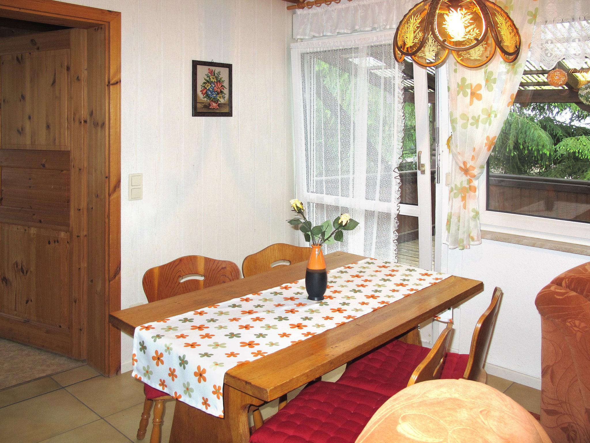 Small resort "Aurora". 4 houses in the resort. 1 km from the centre of Steinbach-Hallenberg, on the outskirts, 15 km from the centre of Oberhof, 30 km from the centre of Meiningen, on a slope, along the wooded area. For shared use: property 1'500 m2, well-kept garden with lawn. Table tennis, patio, garden furniture, barbecue, children's playground. In the house: storage room for bicycles. Steep motor access to 100 m from the house. Central parking spaces. Supermarket 1 km, restaurant 400 m, bus stop "Steinbach-Hallenberg Rathaus" 1.5 km, railway station "Steinbach-Hallenberg" 2 km, outdoor swimming pool 600 m. Walking paths from the house 50 m, cycle lane. Please note: the photograph shows a typical example.