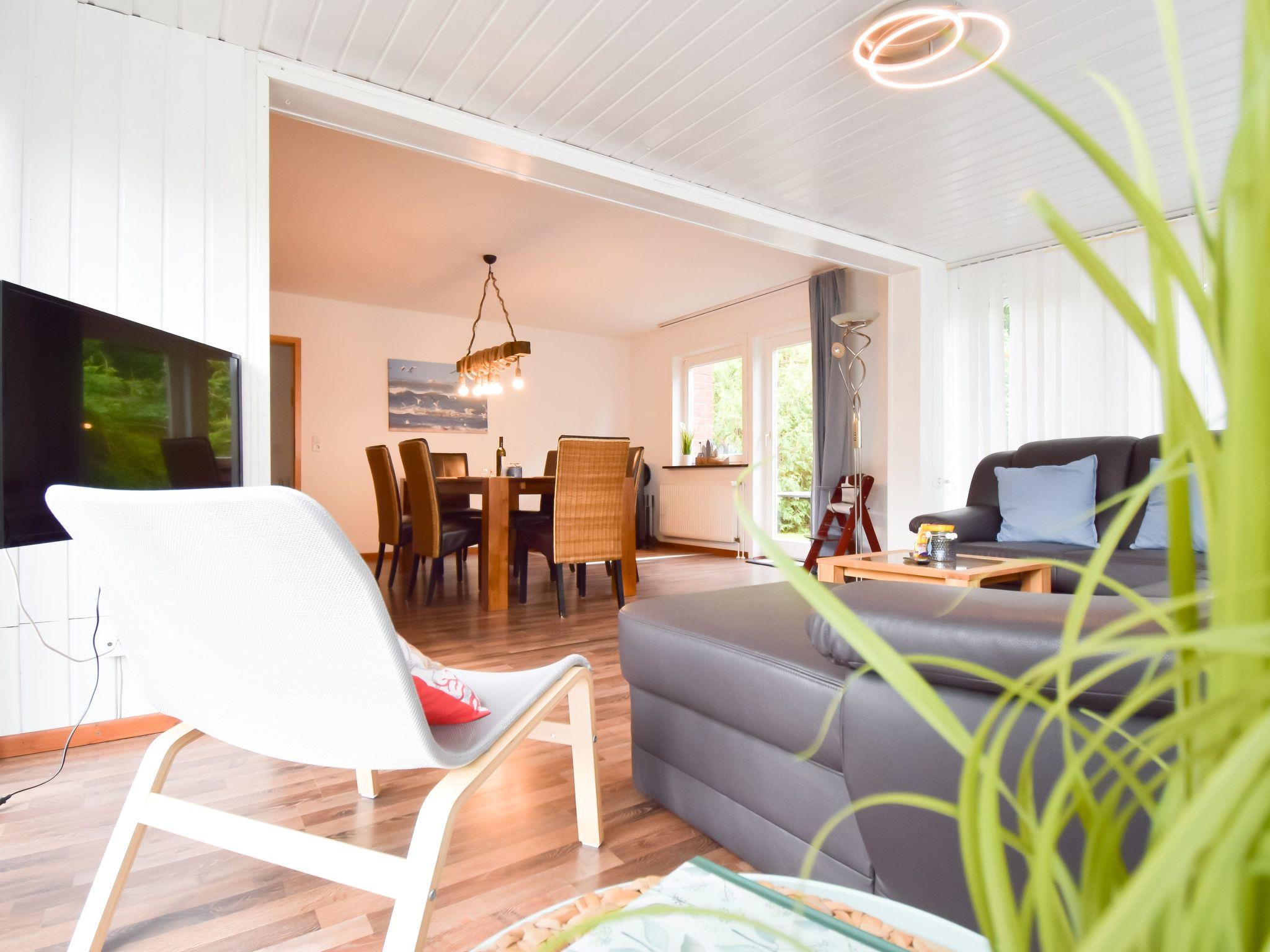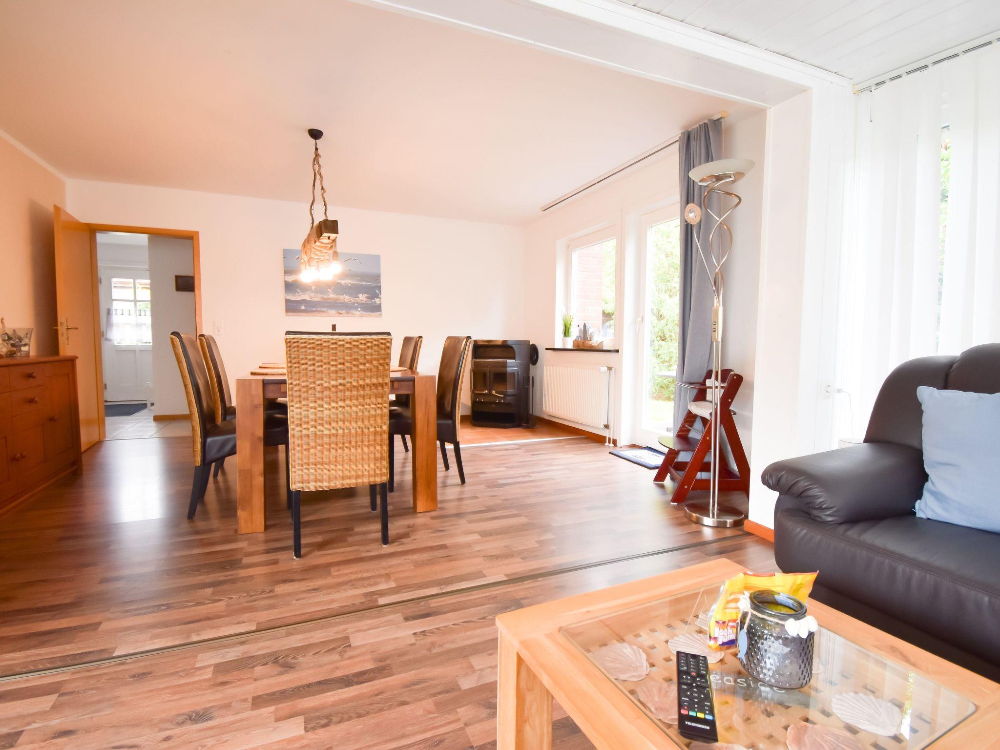 The interior of the house exudes a cosy atmosphere that invites you to relax. A wood-burning stove provides cosy warmth in the evenings. In addition, the furnishings are family-friendly with a cot, changing table, high chair and children's crockery to meet the needs of even the youngest guests. A fully equipped kitchen and a bright conservatory round off the facilities inside and ensure a comfortable stay.