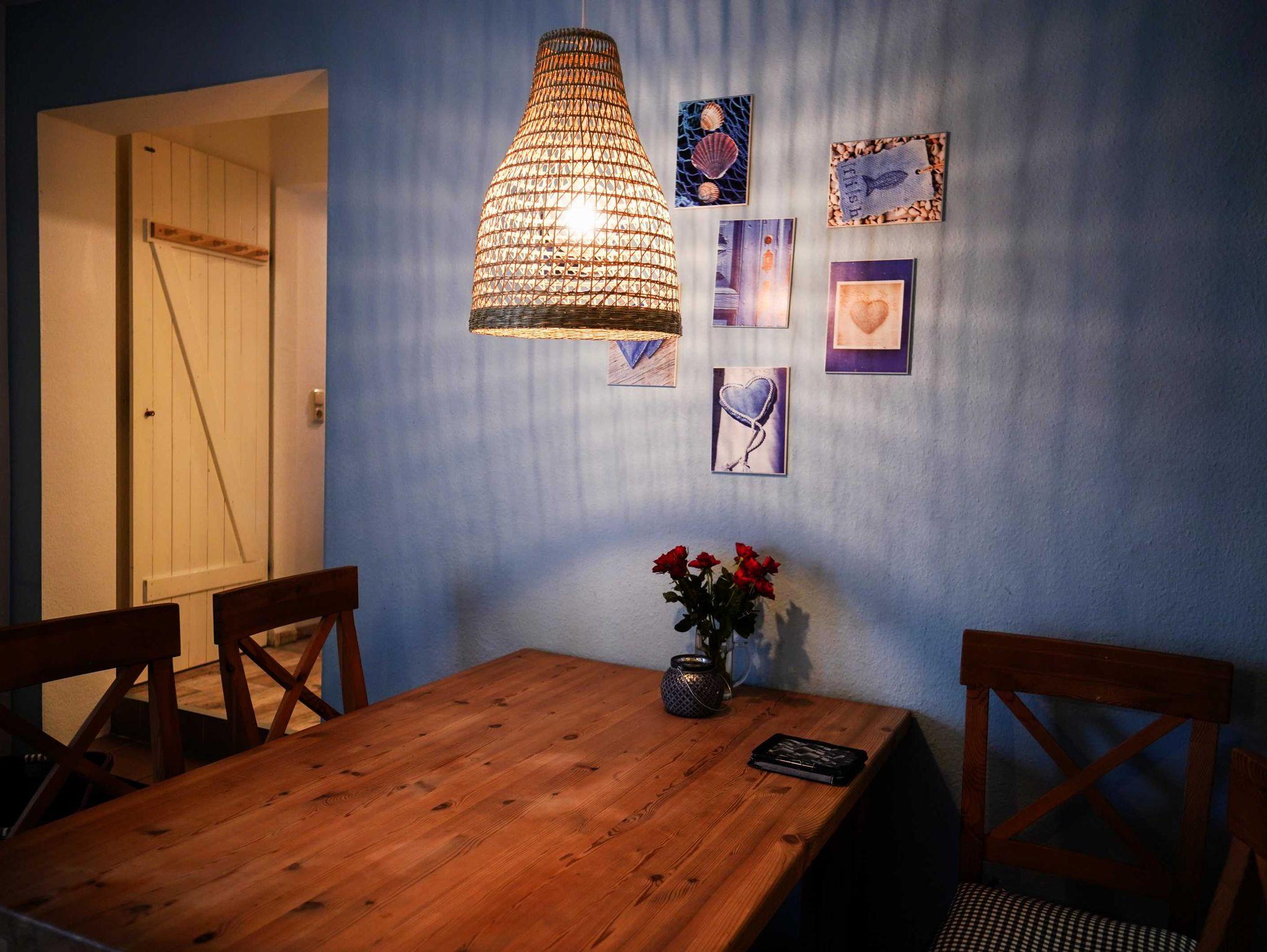 Das hölzerne Tor zum Elternschlafzimmer ist das Markenzeichen dieser 54 qm Ferienwohnung. Die Erdgeschoss-Wohnung bietet Platz für bis zu 4 Personen und verfügt neben einem Wohnraum, einer Küche und einem Bad mit Dusche und WC über 2 Schlafzimmer (1x mit Doppelbett, 1x mit Etagenbett). Von der gemütlichen Ledercouch blickt man direkt auf den Garten und den Teich. Zu dieser schönen Wohnung gehört auch eine eigene Terrasse.