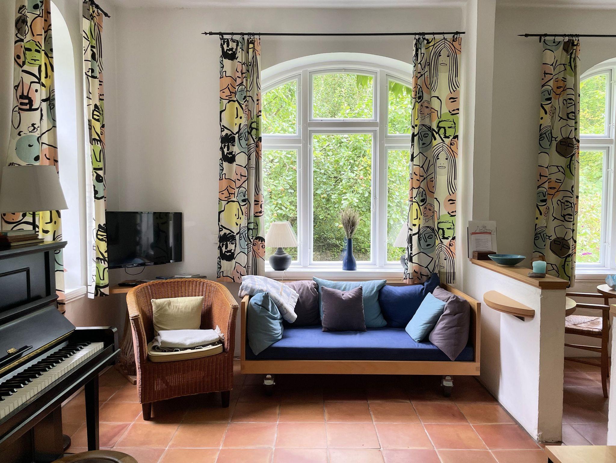Die Ferienwohnung Kiekut ist stilvoll romantisch mit modernen Elementen eingerichtet. Sie liegt im Erdgeschoss des alten Zollhauses und bietet bis zu 2 Erwachsenen und 2 Kindern bis 14 Jahren viel Wohlfühlkomfort mit einer Fußbodenheizung unter dem Terracottaboden. Ideal für 2 Leute und Hund. Die lichtdurchfluteten Räume laden ein zu gemütlichen und entspannten Stunden vor dem Kamin, abgelagertes Holz liegt einsatzbereit gleich daneben. Das Klavier (Feurich 1929) ist komplett restauriert, wird regelmäßig gestimmt und ist spielbereit. (9 Uhr - 21 Uhr)
