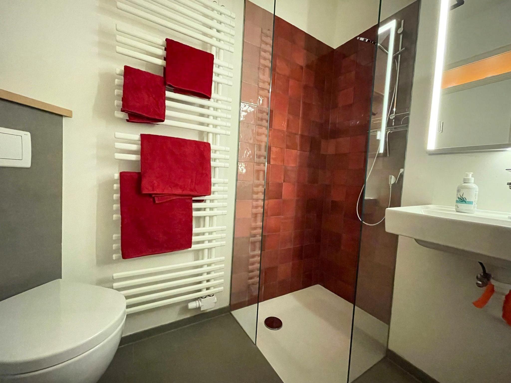 - Duschbad mit bodengleicher Dusche und Handtuchheizung inklusive Handtücher