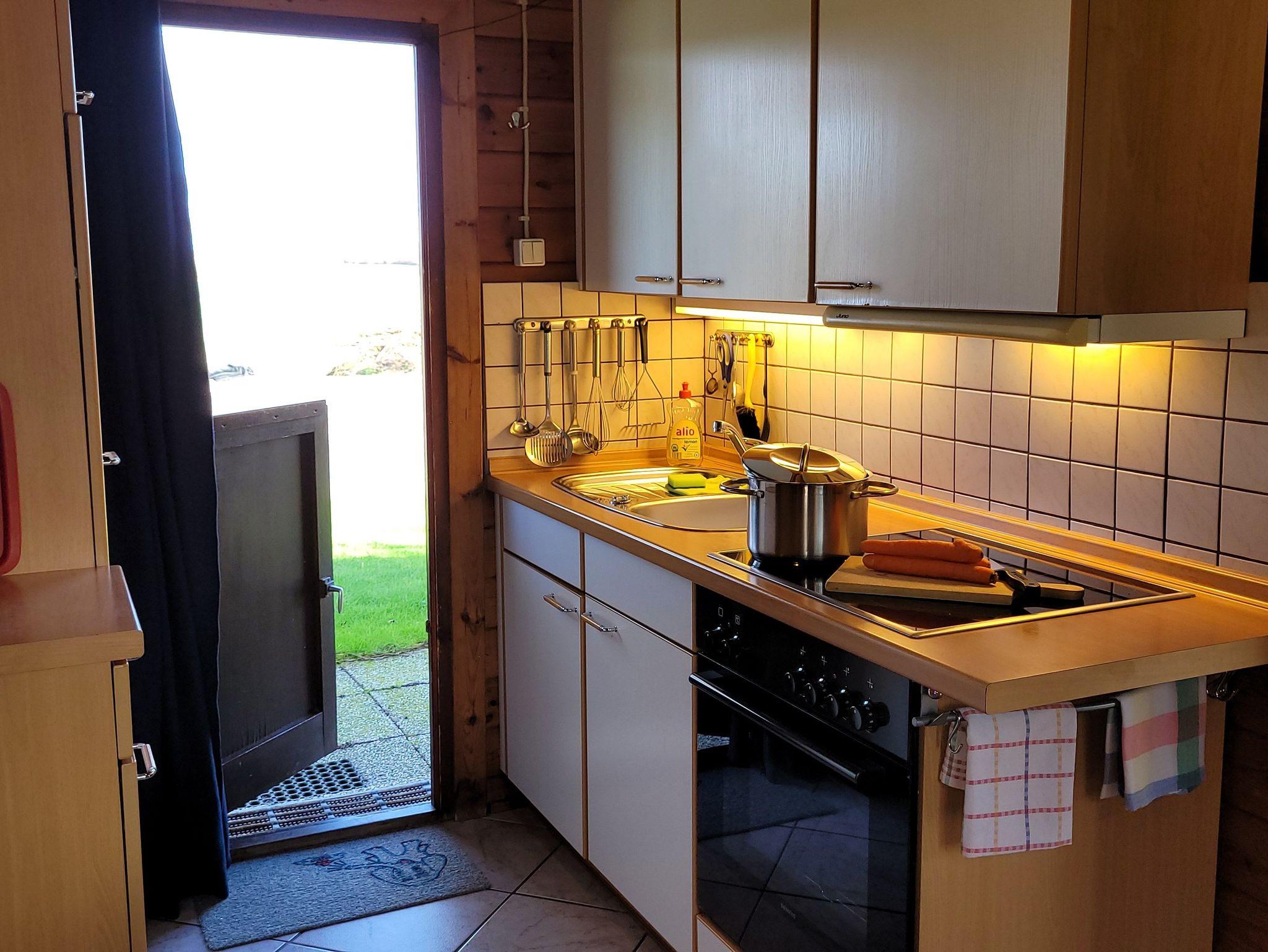 Etwas abseits vom Hof und von Obstbäumen umgeben bietet das kleine Holzhaus Ostsee bis zu 4 Personen behaglichen Urlaubskomfort: