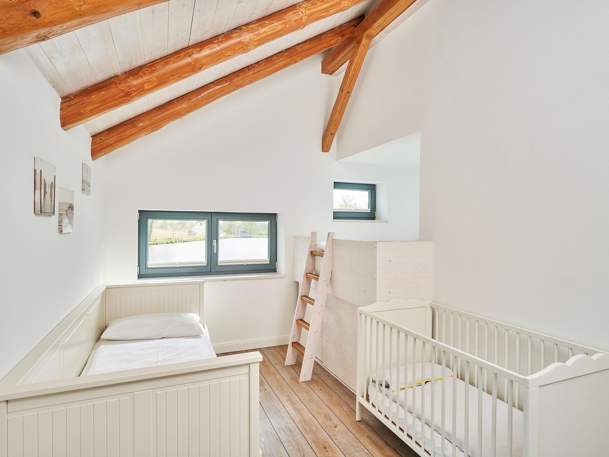• Schlafzimmer mit Doppelbett (auf Podest) und Einzelbett; Bettwäsche inklusive