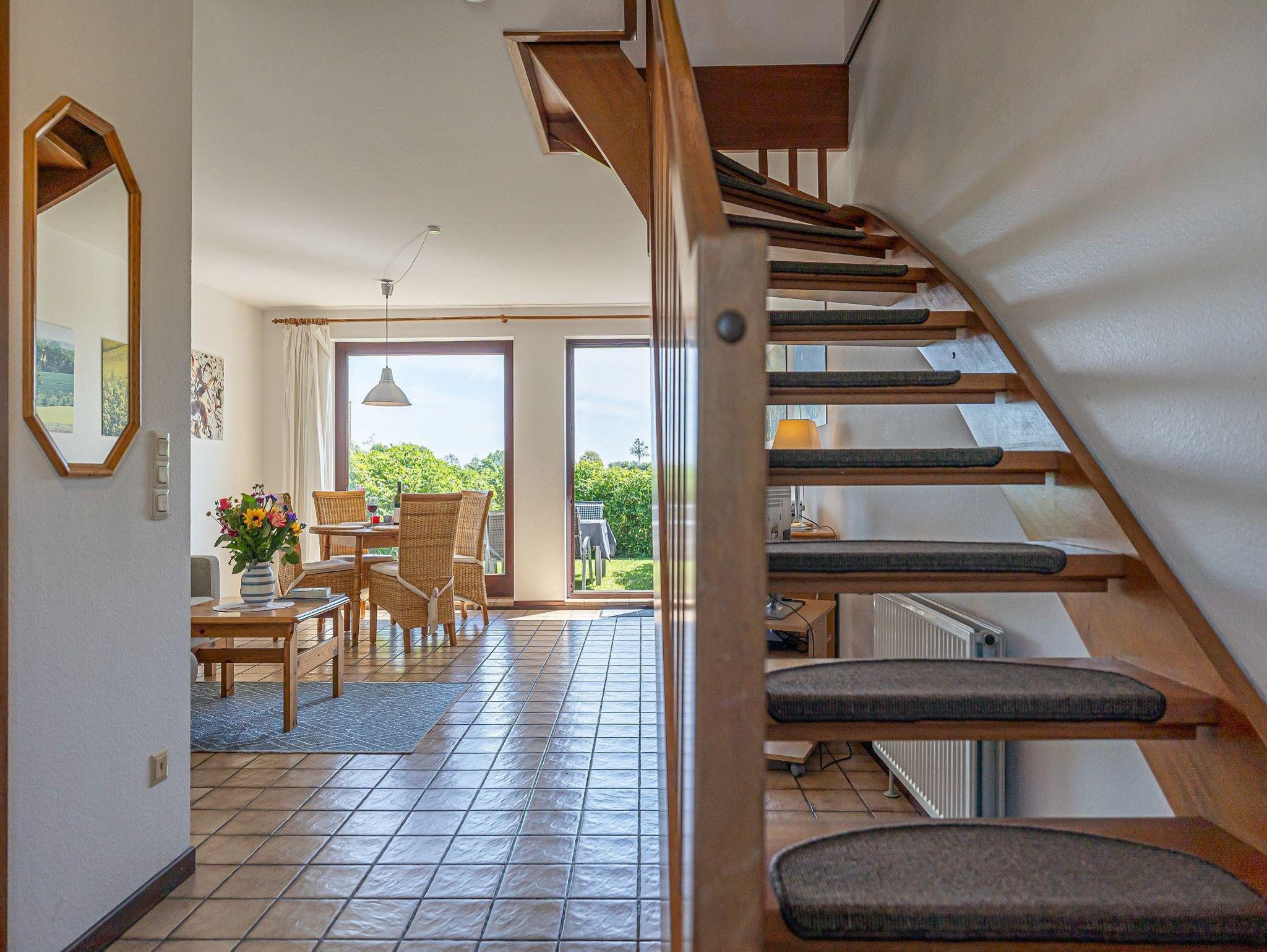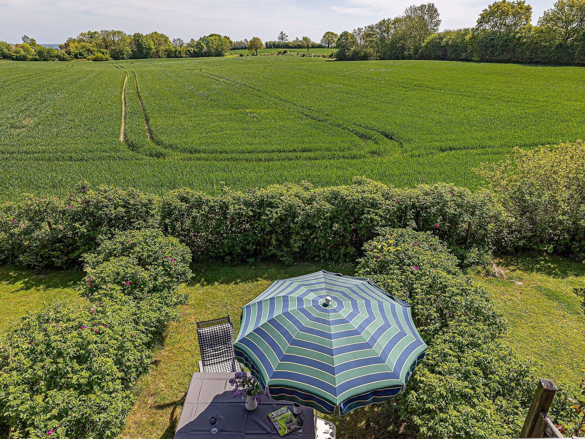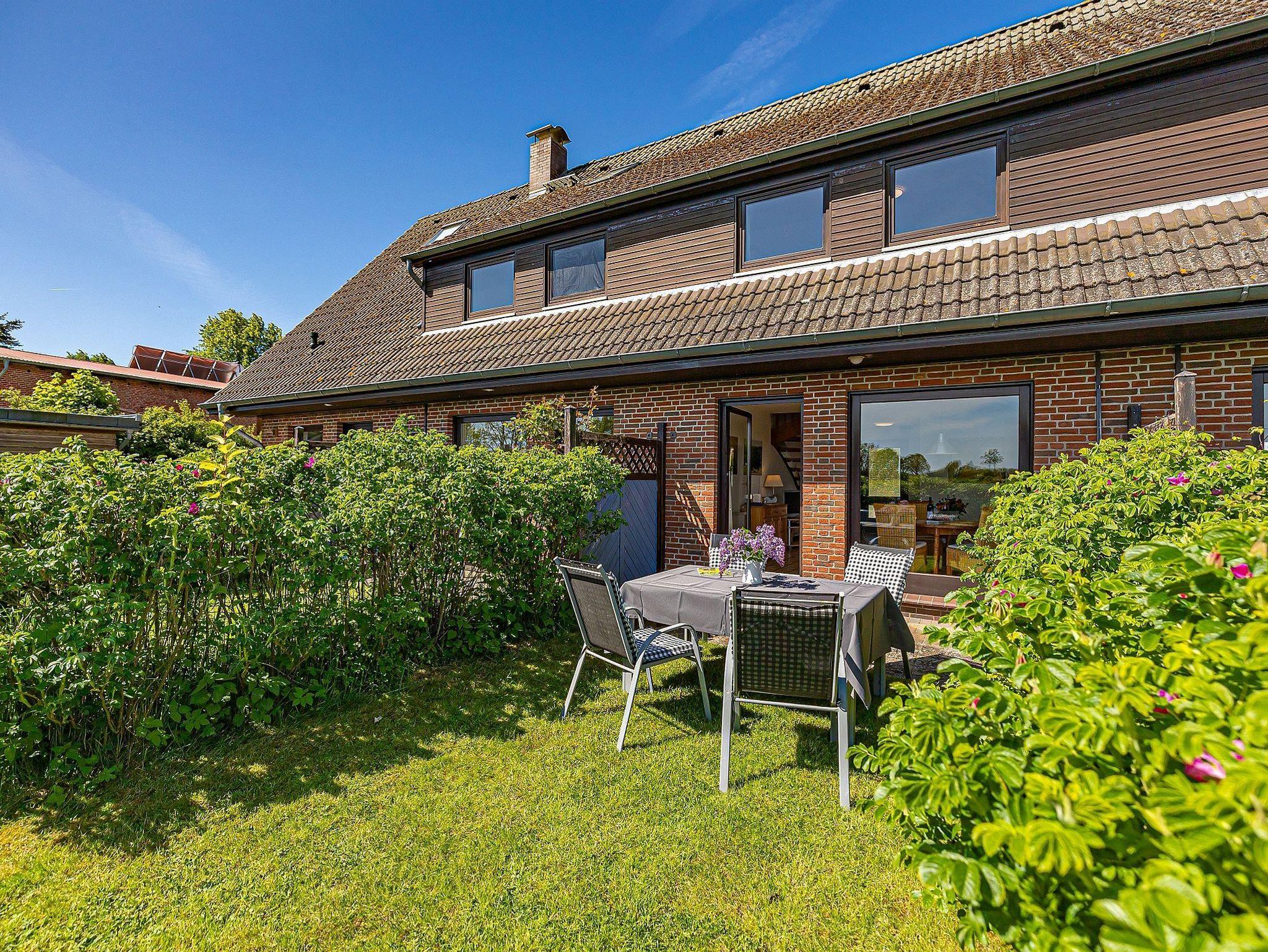 Fünf Ferienwohnungen reihen sich nahtlos aneinander. Jede hat einen separaten Eingang und eine eigene Terrasse mit Gartenmöbeln und Grill. Der Panoramablick zeigt Ihnen die Wiesen und Weiden Richtung Meer.
