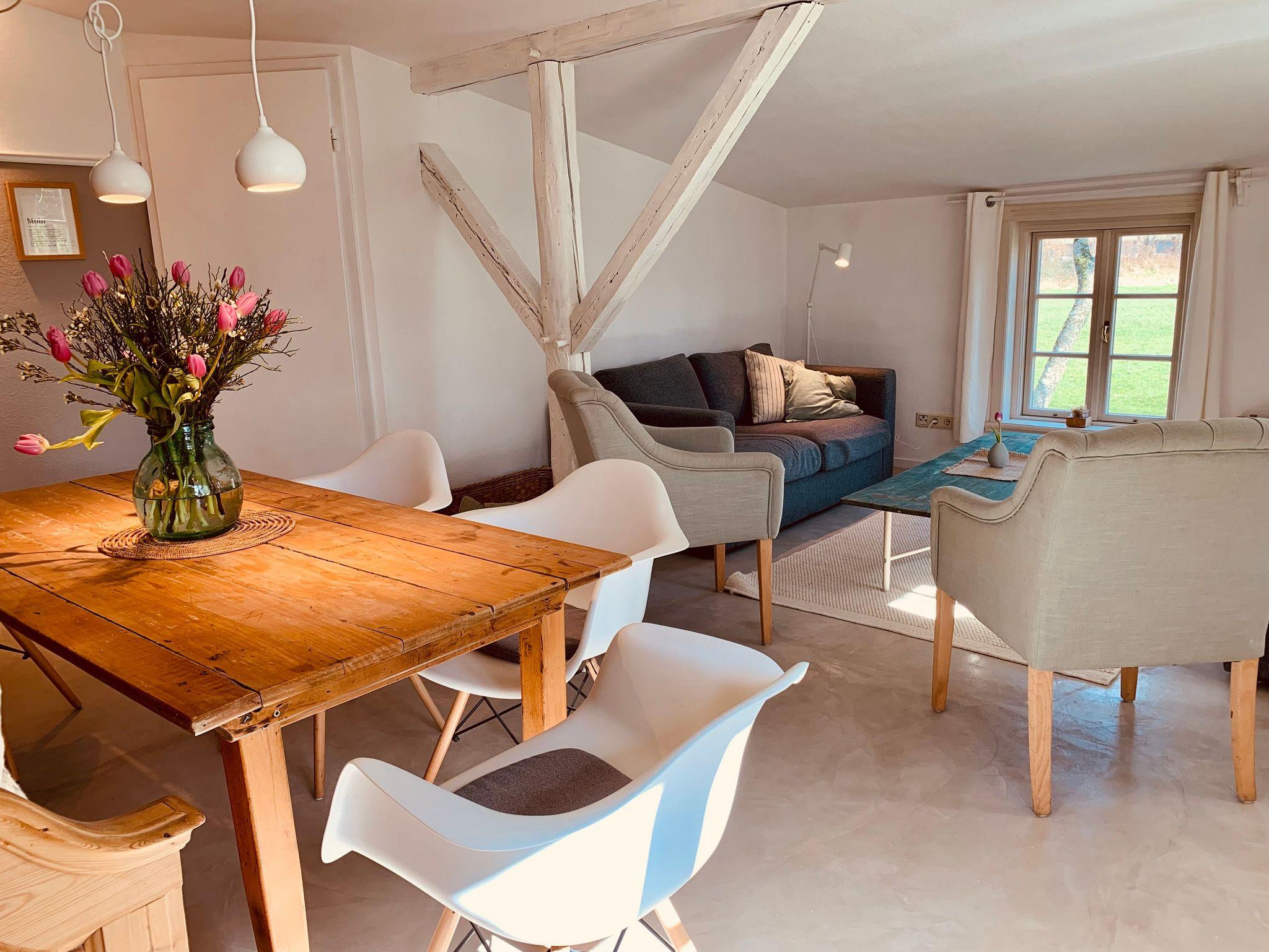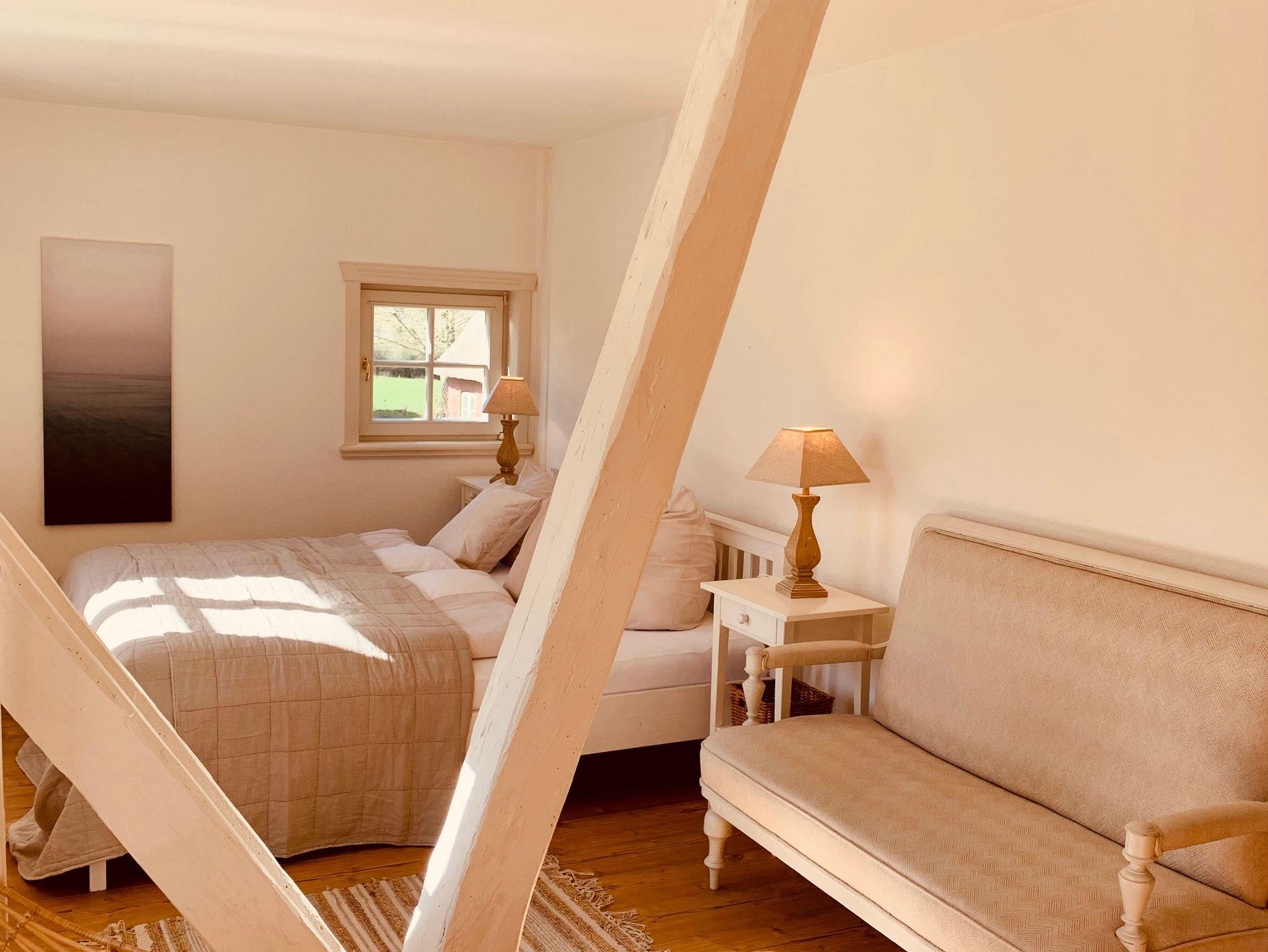 Die Ferienwohnung Fief befindet sich im Obergeschoss der ausgbauten Scheune und ist liebevoll in einem individuellen MIx aus Modern und Antik gestaltet.