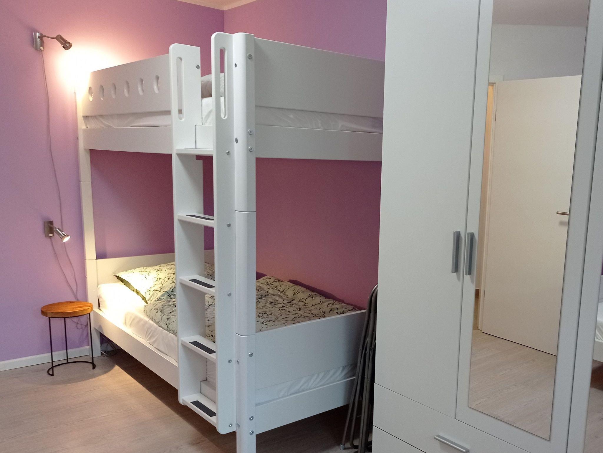 - Schlafzimmer mit 1 Etagenbett (2x 90x200), 1 Einzelbett (90x200); Bettwäsche zubuchbar