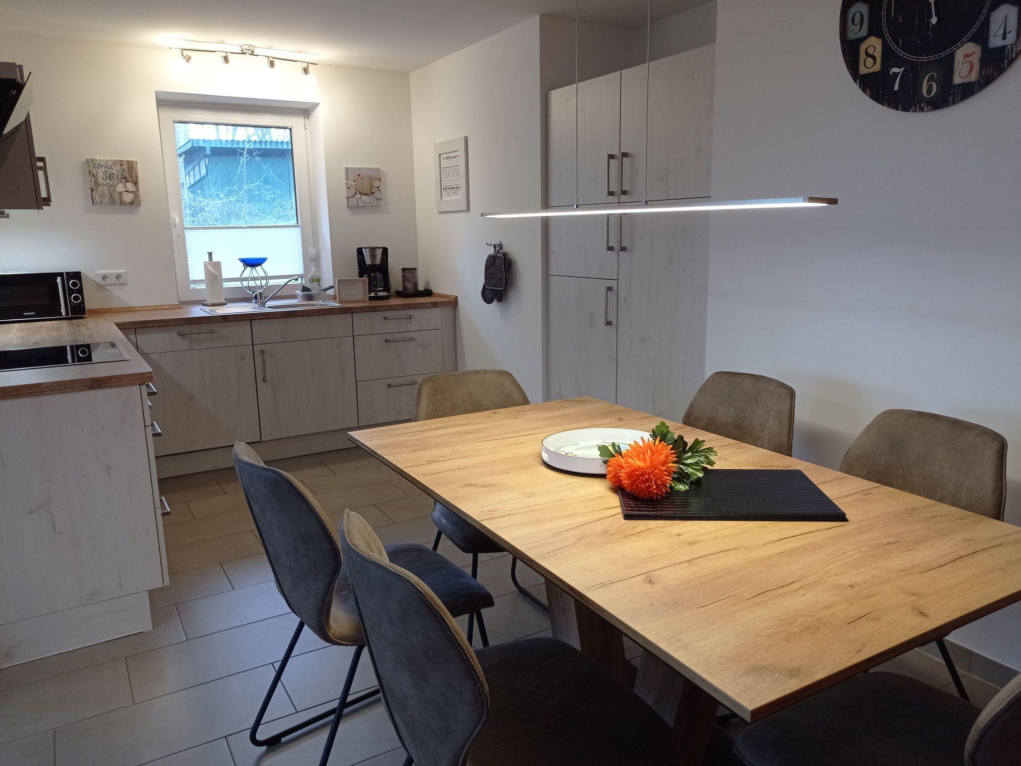 - Offener Wohnbereich mit Kaminofen Essbereich und moderne offenen Küche sowie angrenzender Terrasse in Südwestlage