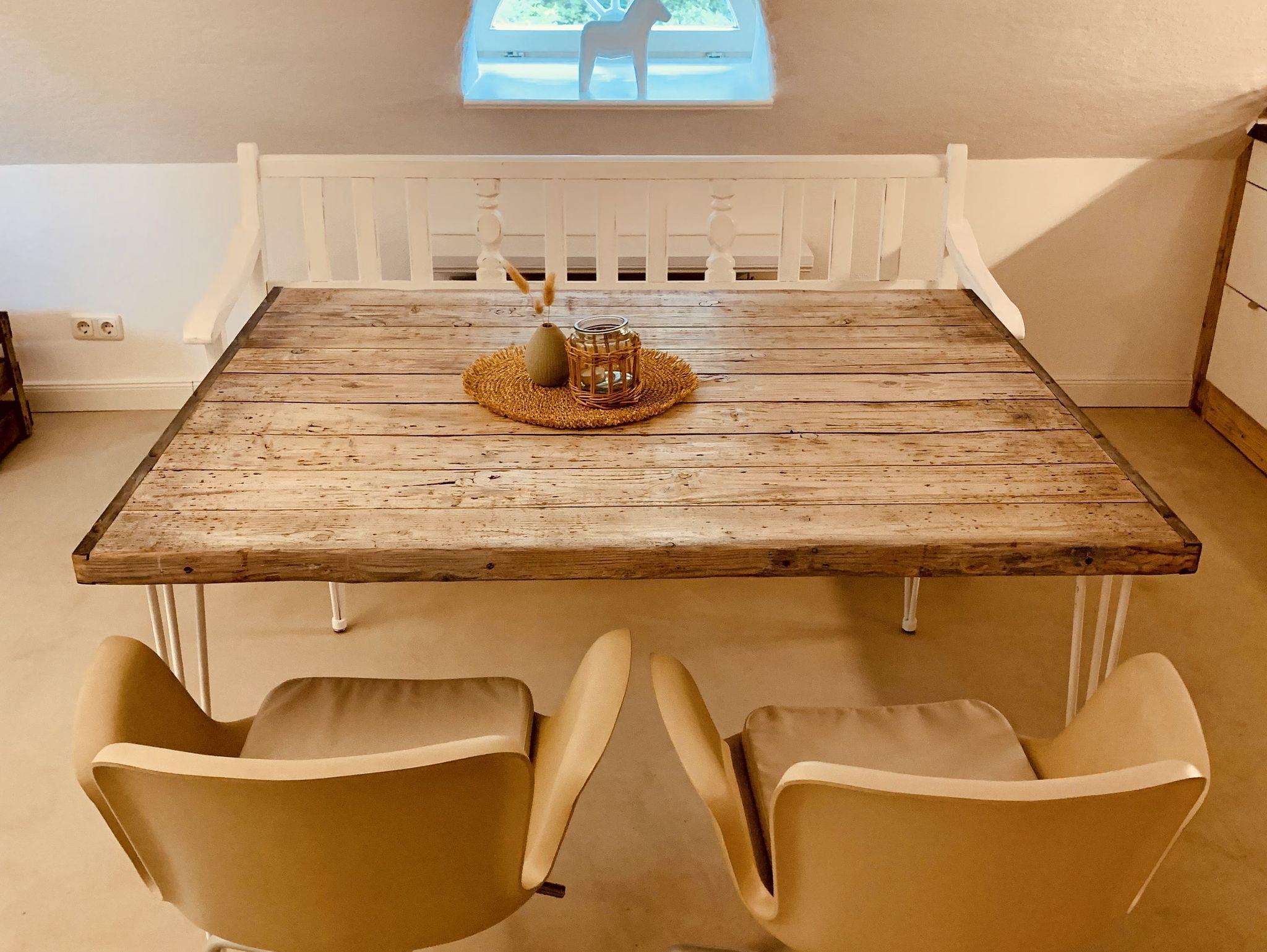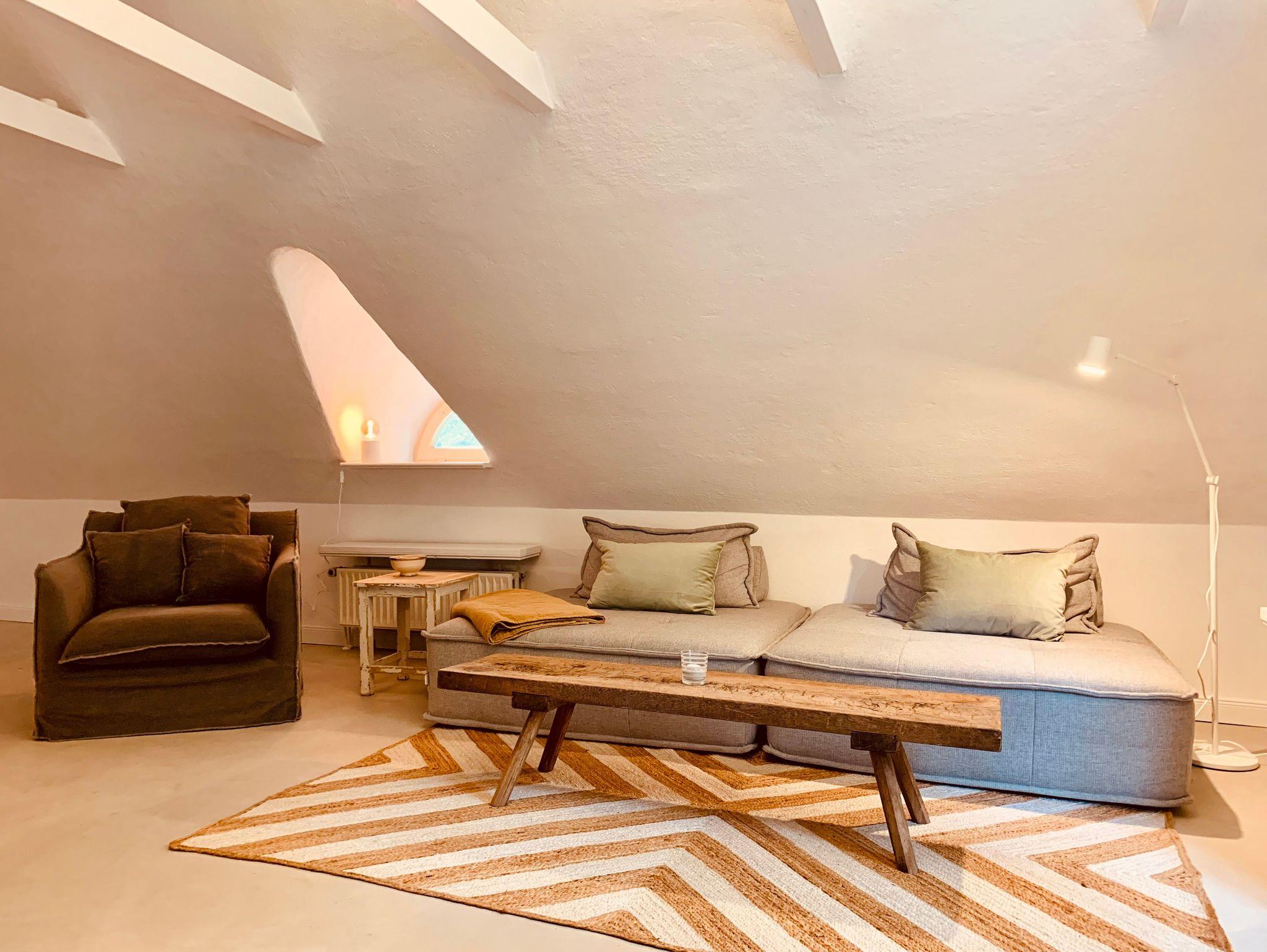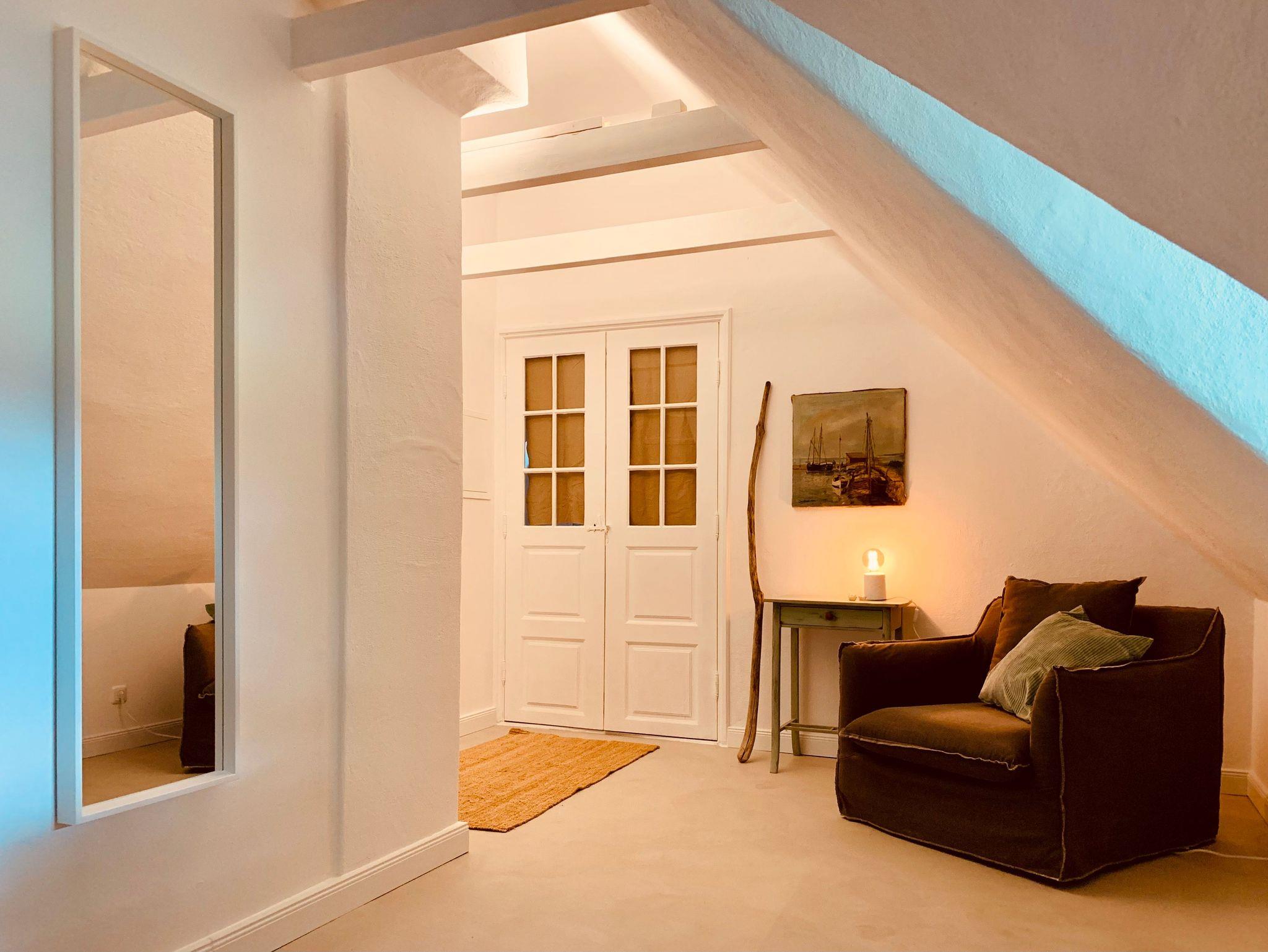 Die Ferienwohnung Söss befindet sich im Obergeschoss des Anbaus am Hauptgebäude und ist liebevoll in einem individuellen MIx aus Modern und Antik gestaltet.