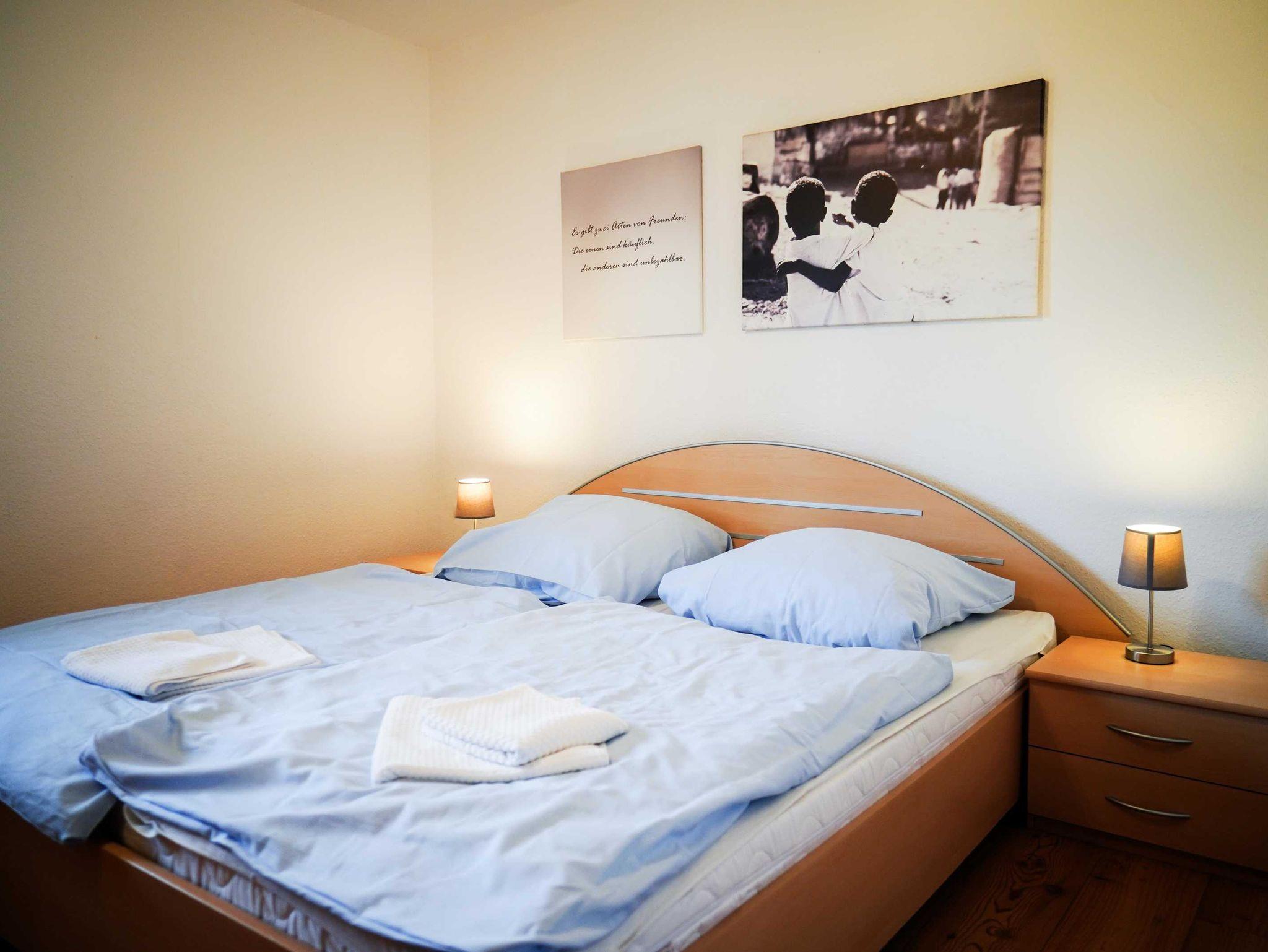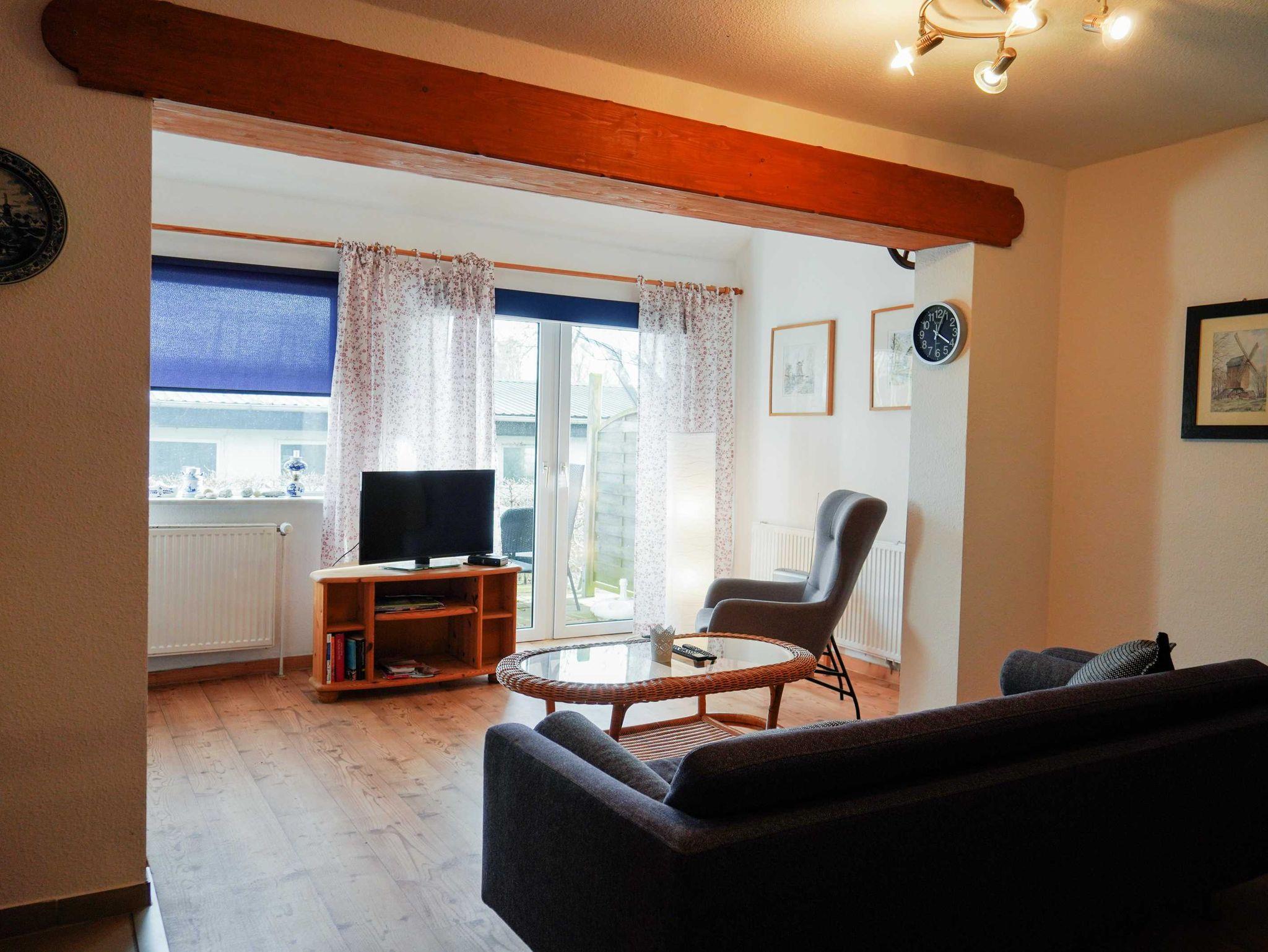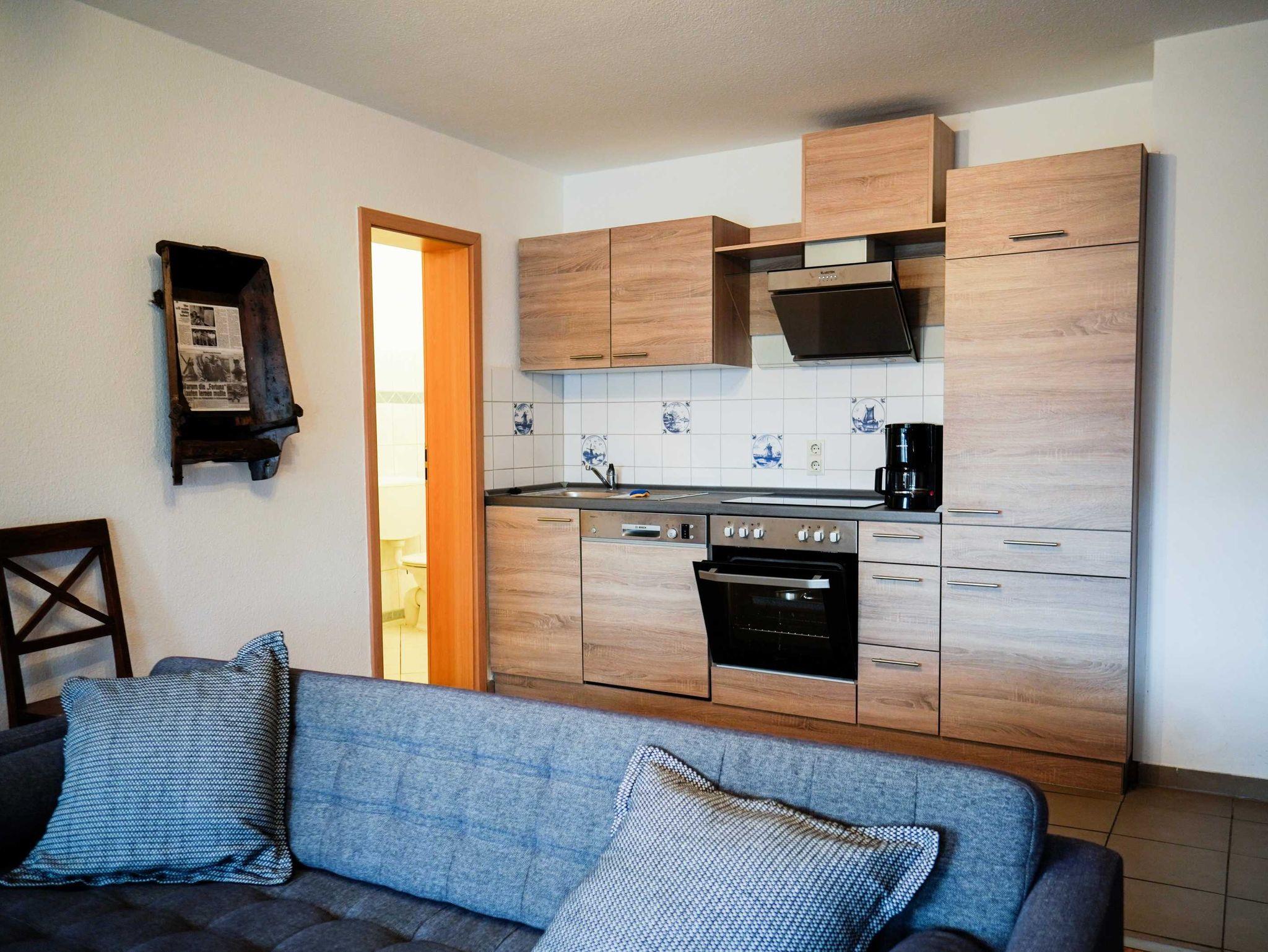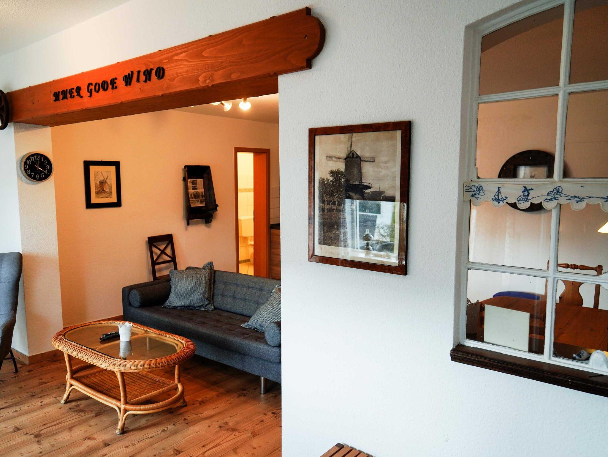 In der im Erdgeschoss gelegenen 60 qm großen Ferienwohnung Mühlenstube sind Originalteile aus einer alten Mühle verbaut. Die Wohnung ist für bis zu 4 Personen geeignet und verfügt über eine Terrasse, einen Wohnraum mit offener Küche, zwei Schlafzimmer (1x mit Doppelbett, 1x mit Etagenbett) und ein Bad mit Dusche und WC.
