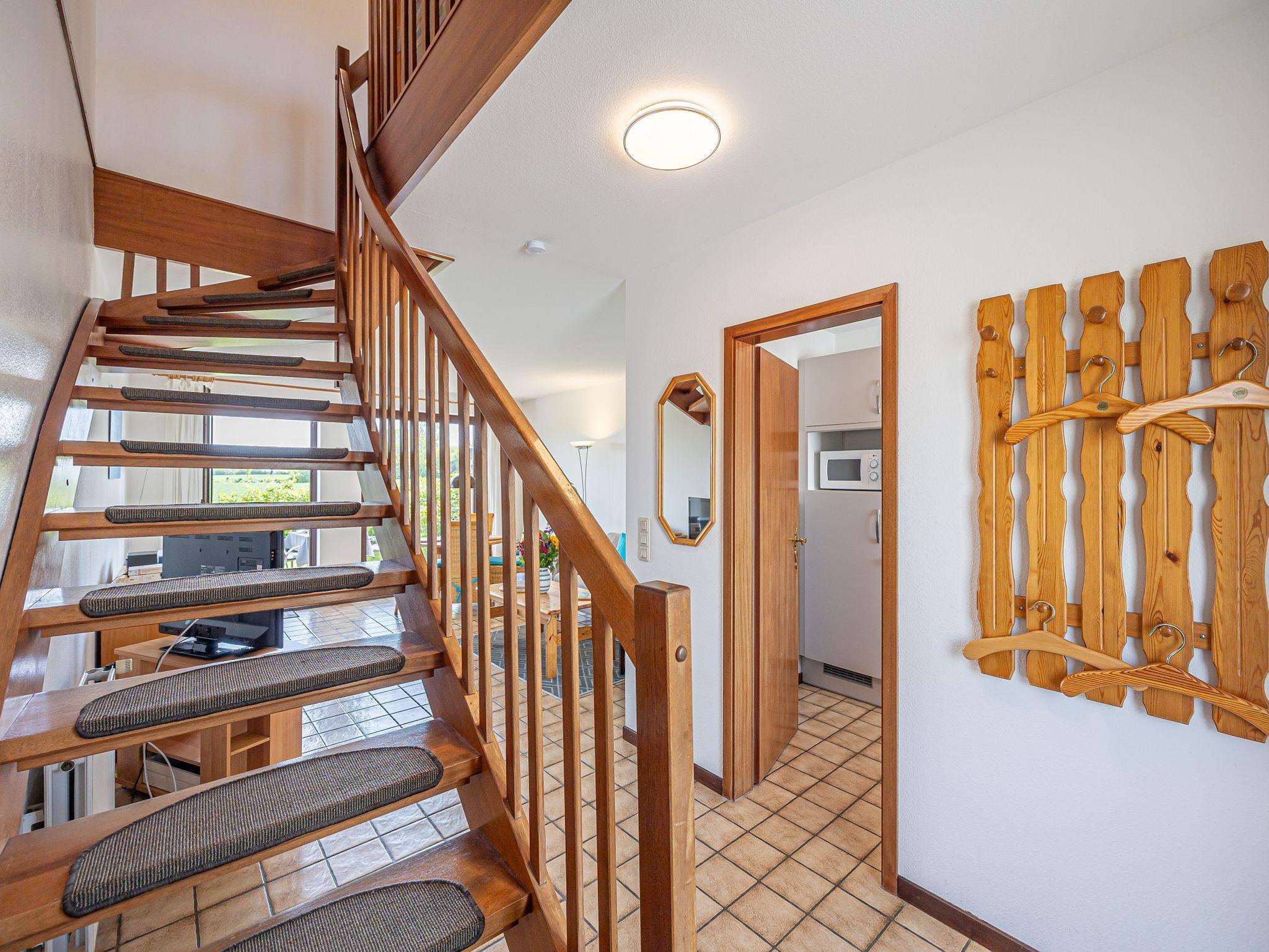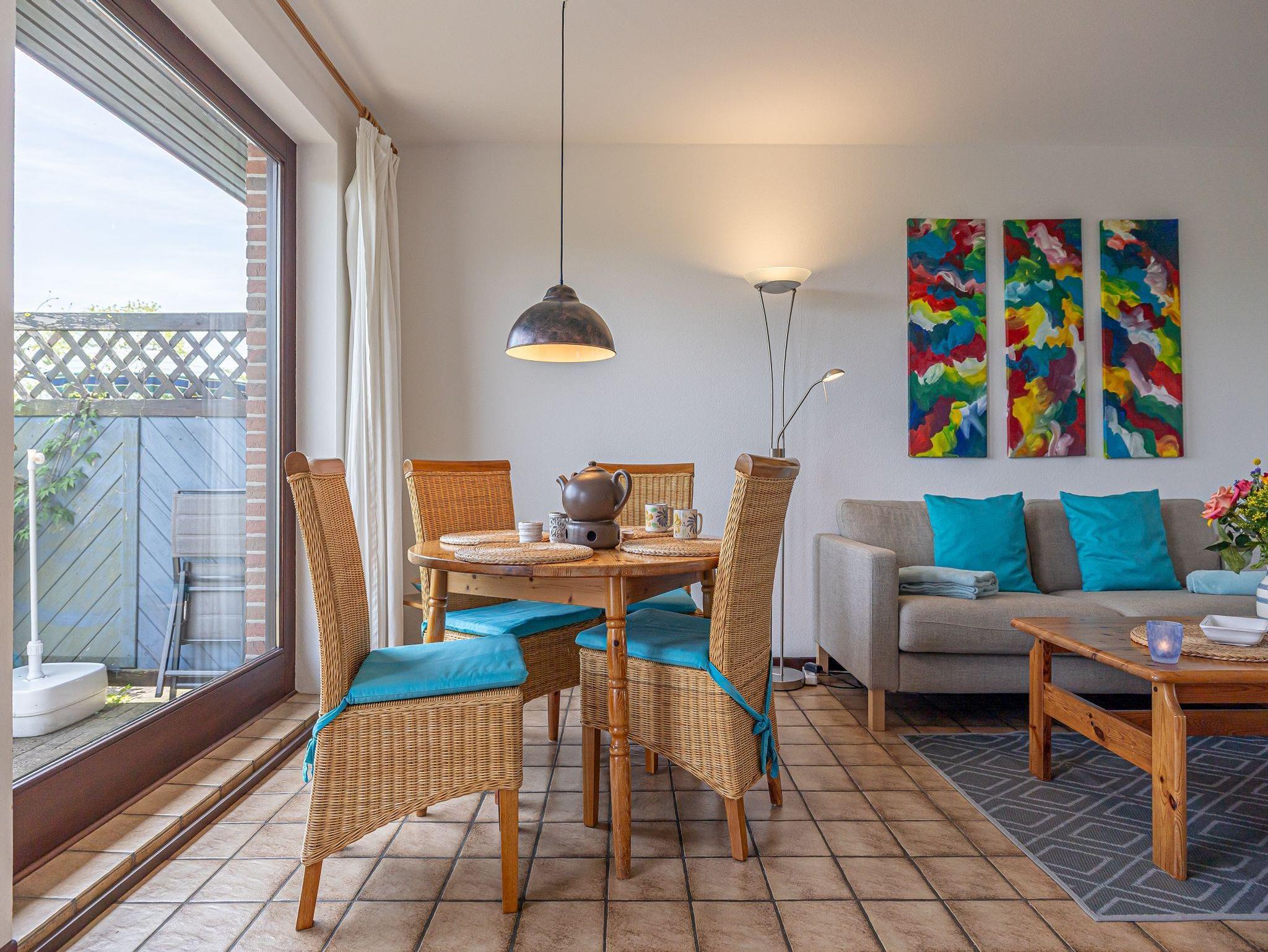 In einer der fünf schöne Ferienwohnungen im Reihenhaus wohnen hinter dem eingerückten Rosenwall an der Dorfstraße nur unweit vom Meer entfernt. Die Ferienwohnung Strandläufer für bis zu 4 Personen (plus 1 Kleinkind) bietet viel Raum zum Wohlfühlen und Entspannen.
