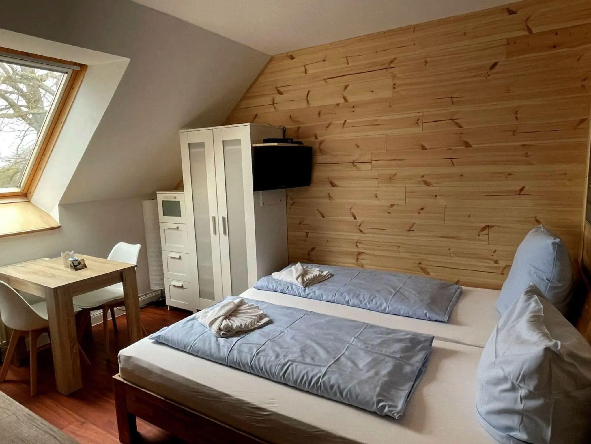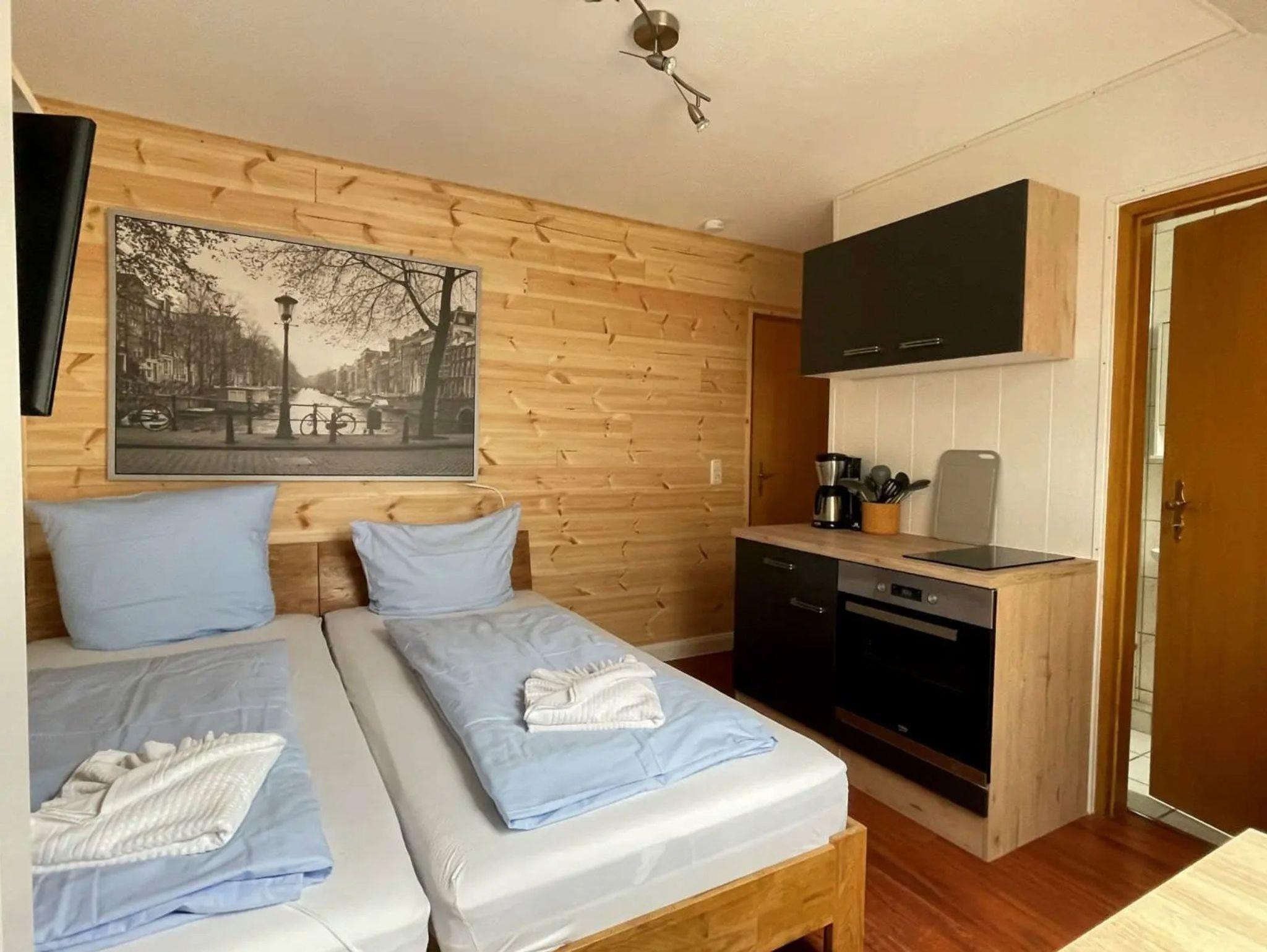 Das 25 qm große und in der 1. Etage gelegene kuschlige1-Zimmer-Appartement verfügt über zwei (zusammen stellbare) Einzelbetten, eine kleine Kochecke und Duschbad.