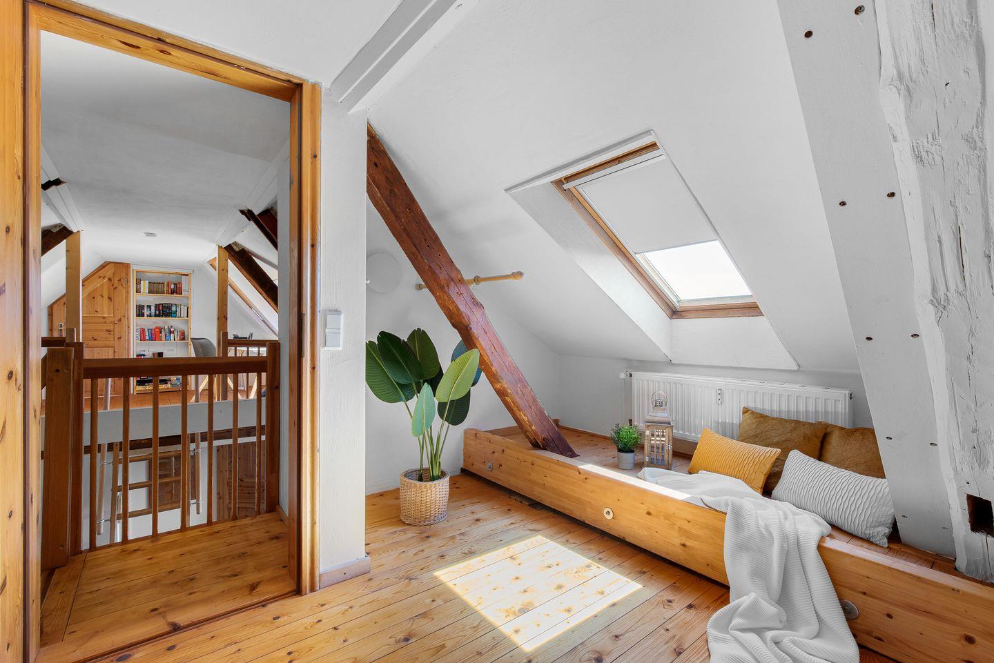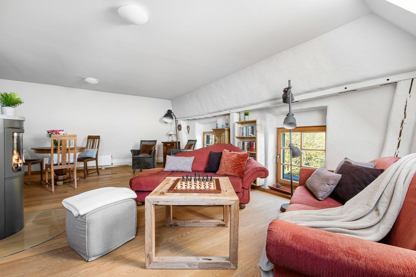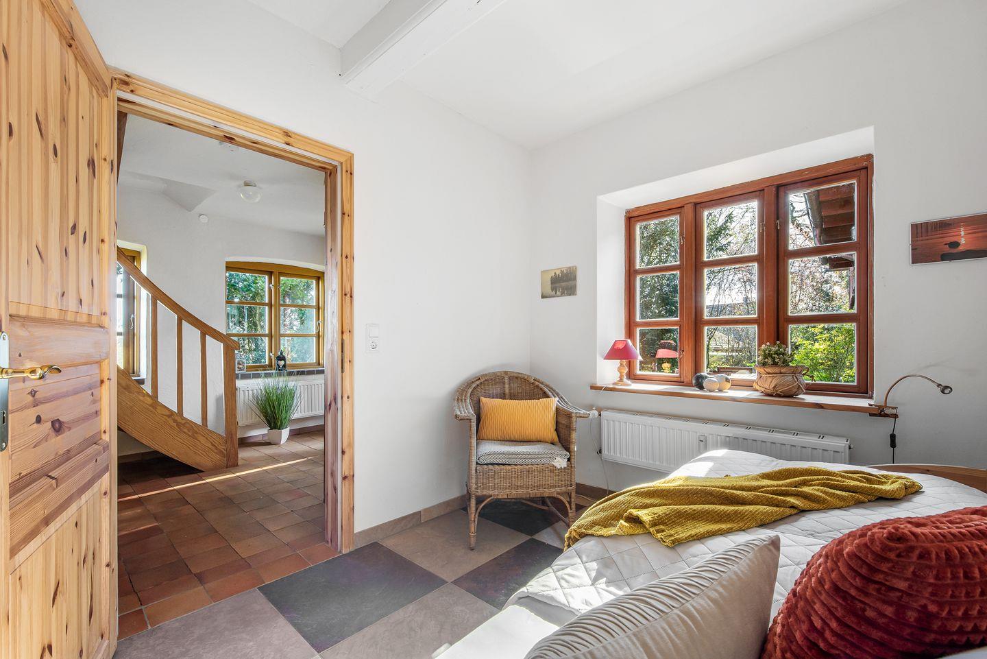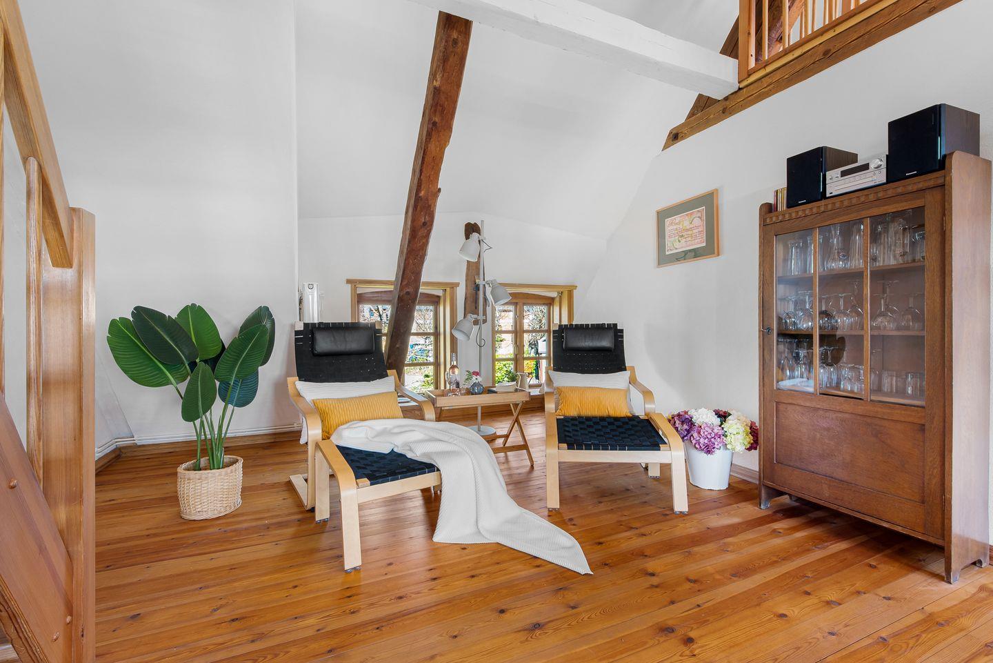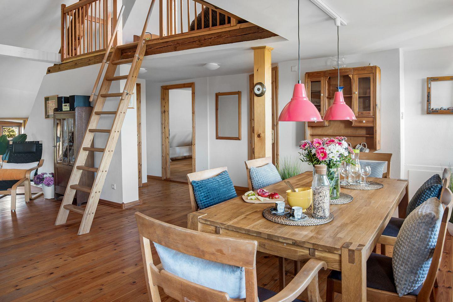 Die Ferienwohnung betrittst Du im Erdgeschoss, in dem sich eines der Schlafzimmer befindet. Alles Weitere liegt im Obergeschoss des renovierten Resthofes, der Dir ein gemütliches und warmes Ambiente zum Wohlfühlen und Entspannen bietet.
