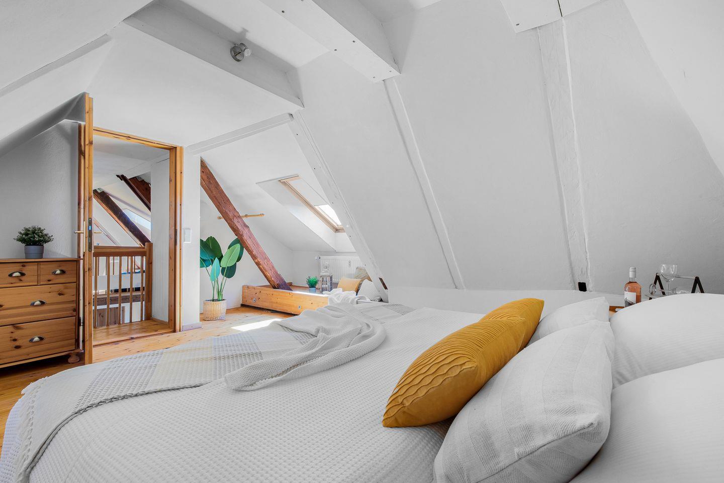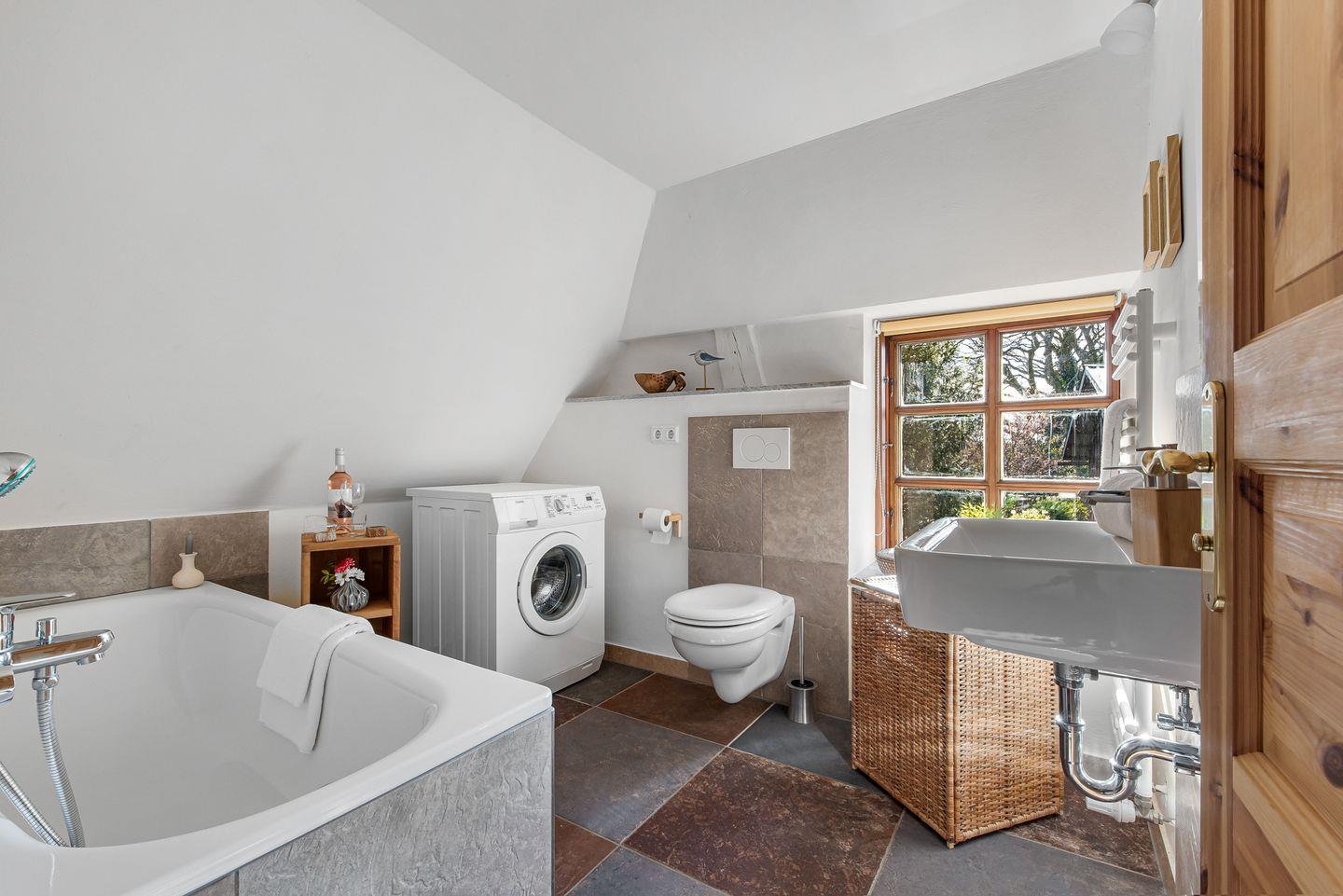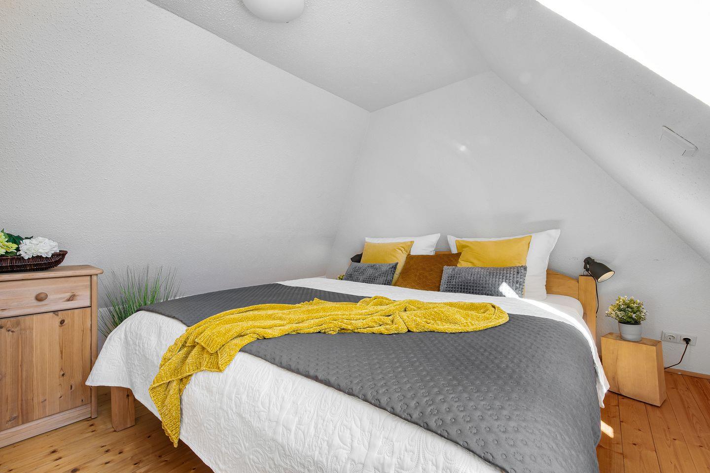 Die Wohnung verfügt insgesamt über vier gemütliche Schlafzimmer mit sieben Schlafplätzen. Ein Badezimmer mit Badewanne und Waschmaschine sowie ein zusätzliches Duschbad befinden sich ebenfalls im Haus.