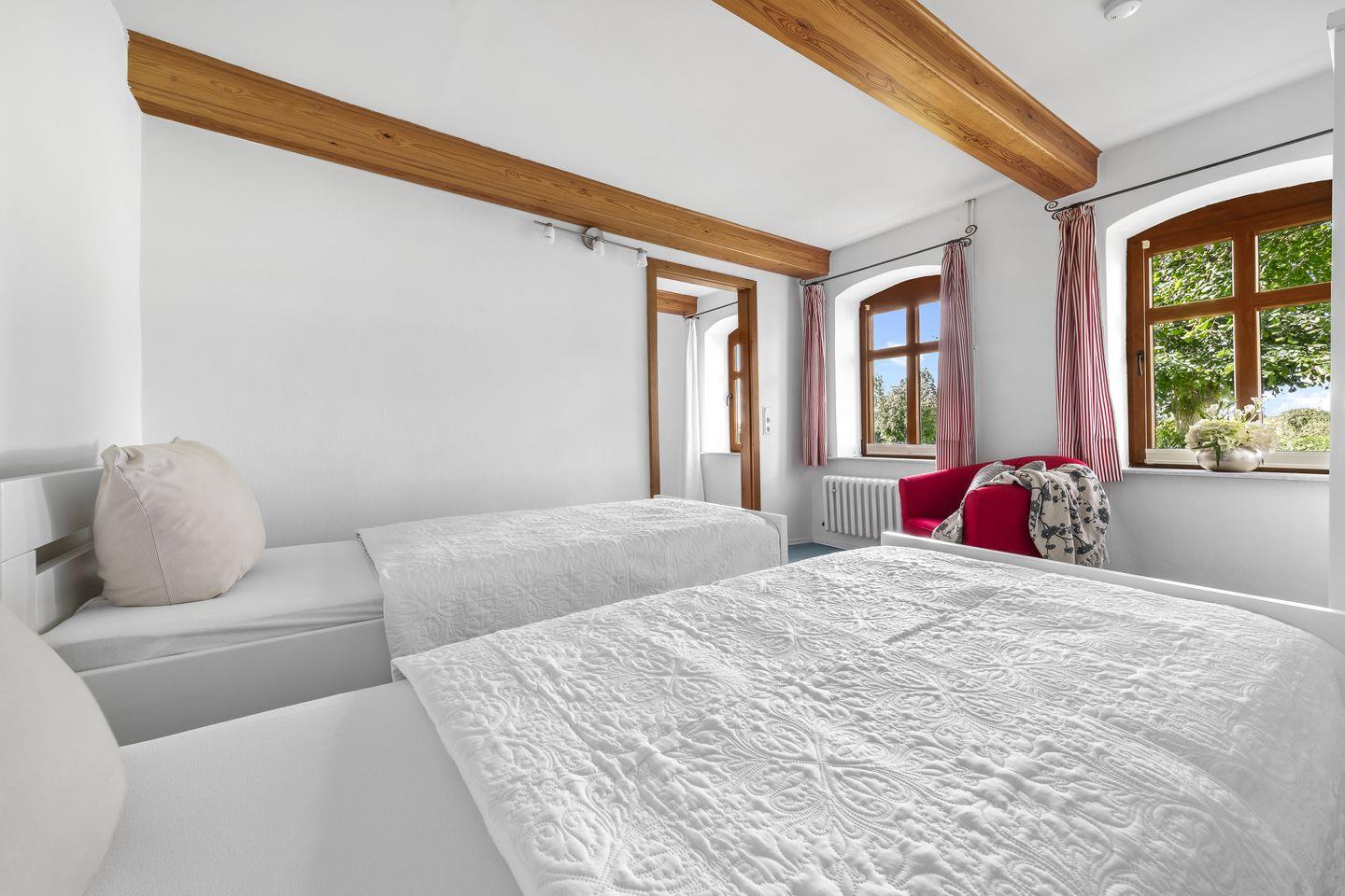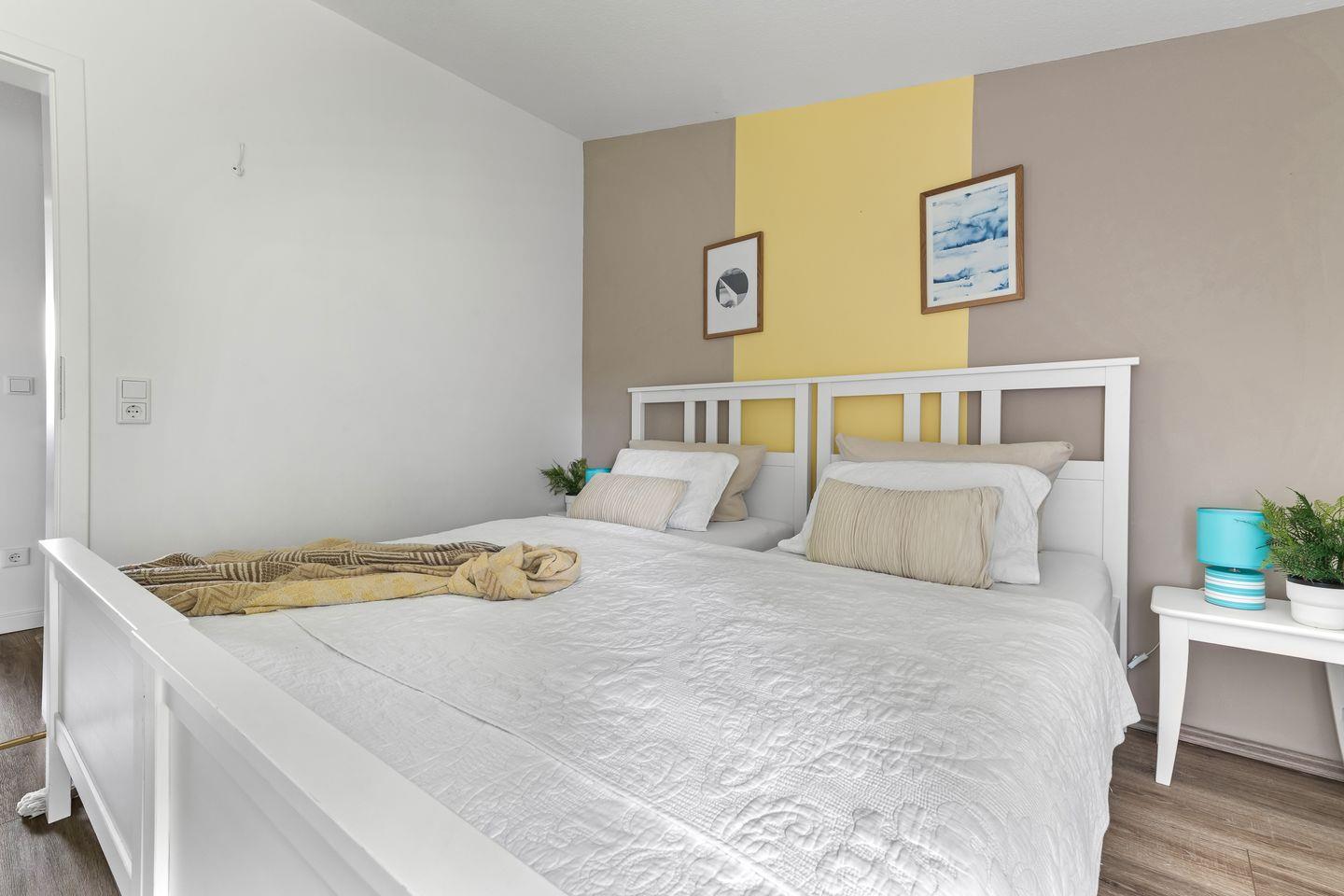 Sie haben die Wahl zwischen 4 komfortablen Schlafzimmern. Zwei Schlafzimmer befinden sich im Erdgeschoss. Einmal mit Doppelbett und einmal mit zwei Einzelbetten ausgestattet. Im Oberschoss befinden sich zwei weitere Schlafzimmer. Einmal mit Doppelbett und einmal mit zwei Einzelbetten ausgestattet. Zusätzlich können noch zwei Personen auf dem Schlafsofa im Wohnzimmer untergebracht werden. Aus allen Schlafzimmer können Sie den Blick ins Grüne genießen.
