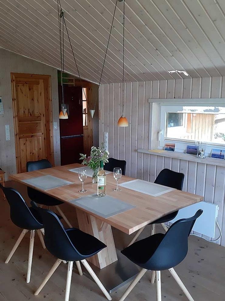 Der großzügige Wohnbereich mit seinem gemütlichen Sofa lädt zu entspannten Abenden vor dem Kamin ein. Für Unterhaltung sorgen ein moderner Fernseher sowie kostenfreies WLAN über Glasfaseranschluss. Die offene Küche ist voll ausgestattet und lässt mit modernen Geräten wie Cerankochfeld, Backofen, Geschirrspüler, Kühlschrank, Kaffeemaschine und Toaster keine Wünsche offen. Im angrenzenden Essbereich können Sie Ihre Mahlzeiten in gemütlicher Runde genießen. Durch die große Terrassentür gelangen Sie direkt in den liebevoll angelegten Garten.