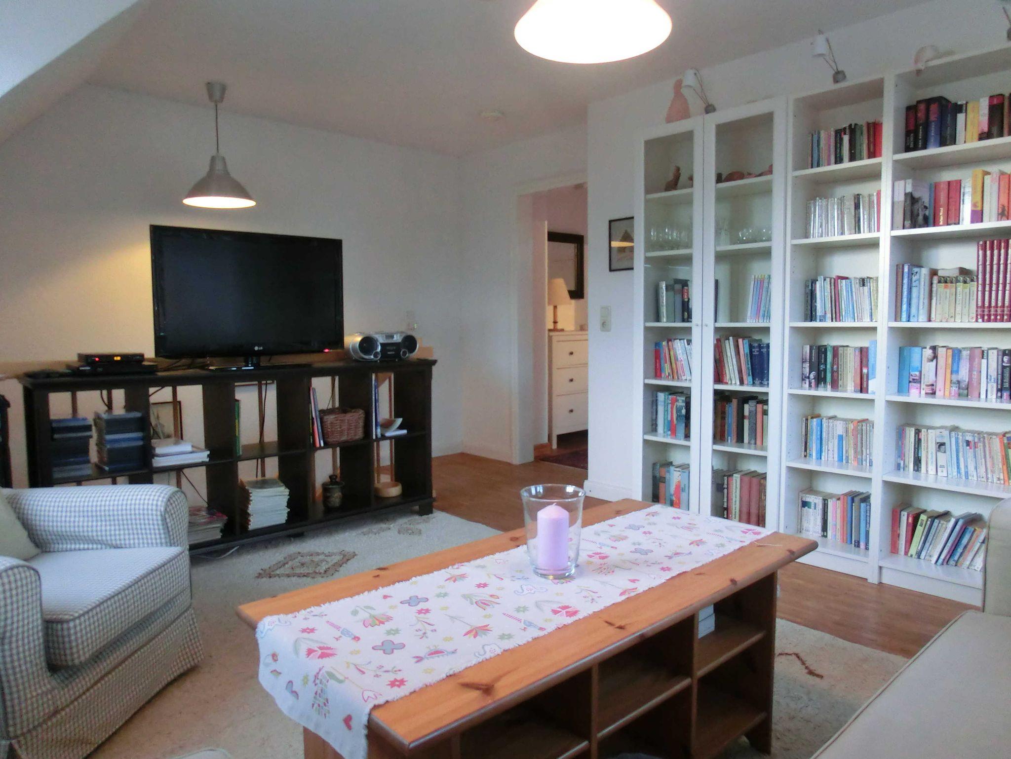 - gemütliches Wohnzimmer mit großer Bücherauswahl