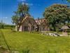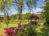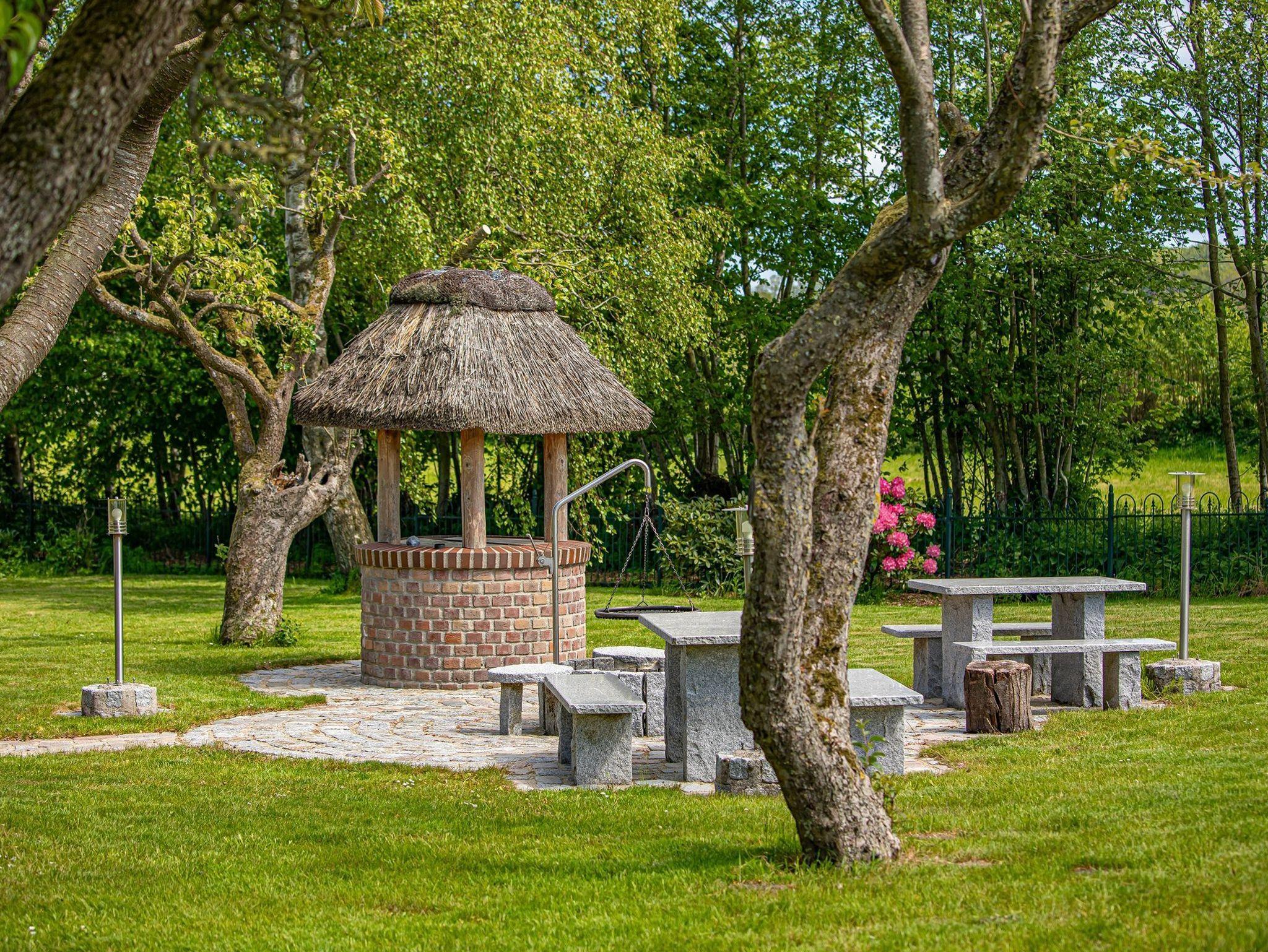 Außenbereich und romantischer Landhausgarten mit altem Baumbestand:
