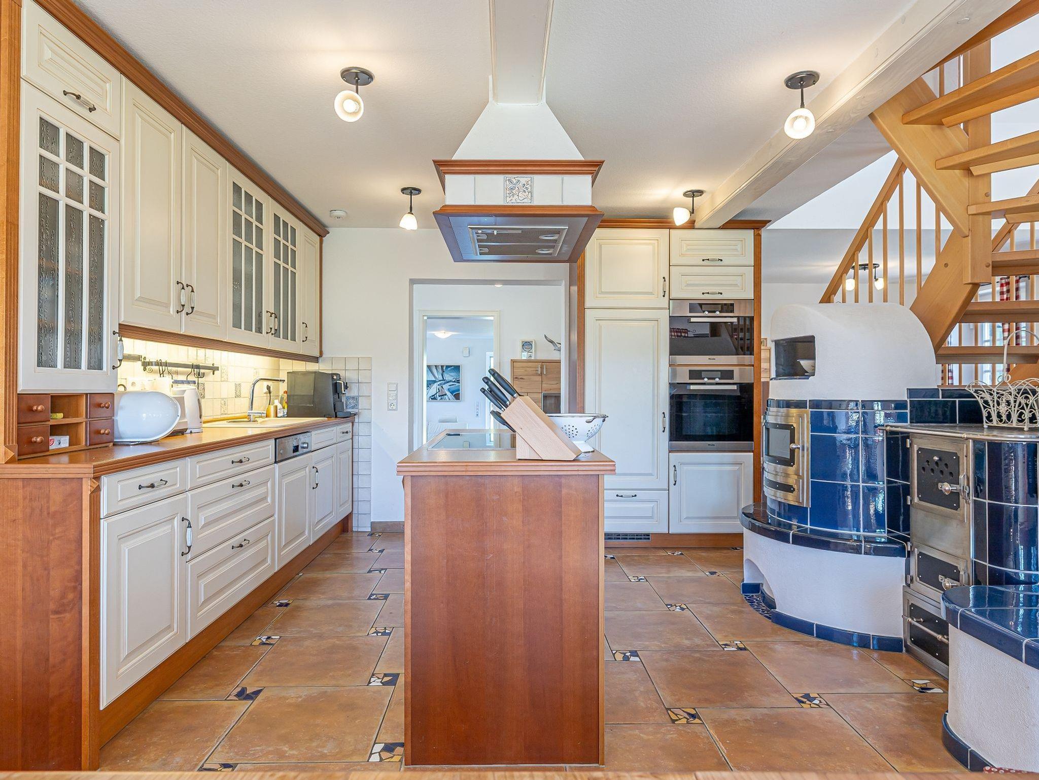 • Großzügiger Wohn- und Essbereich mit Kachelofen/offenem Kamin und angrenzender Küche mit Kochinsel