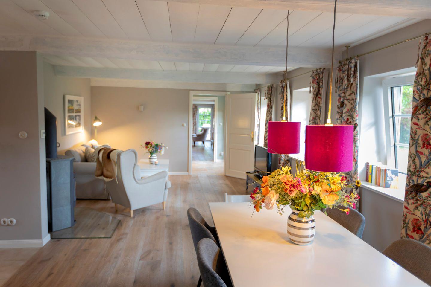 Das Ferienhaus „Fjord Cottage“ ist ein liebevoll kernsaniertes Reetdachhaus für bis zu 12 Personen mit einer Gesamtwohnfläche von 224 m². Es besteht aus zwei großzügigen Haushälften, die im Inneren des Hauses miteinander verbunden sind. Dadurch eignet sich das Haus ideal für den gemeinsamen Urlaub mit mehreren Generationen, größere Familien oder Freundesgruppen, die zusammen reisen und dennoch Rückzugsmöglichkeiten schätzen.