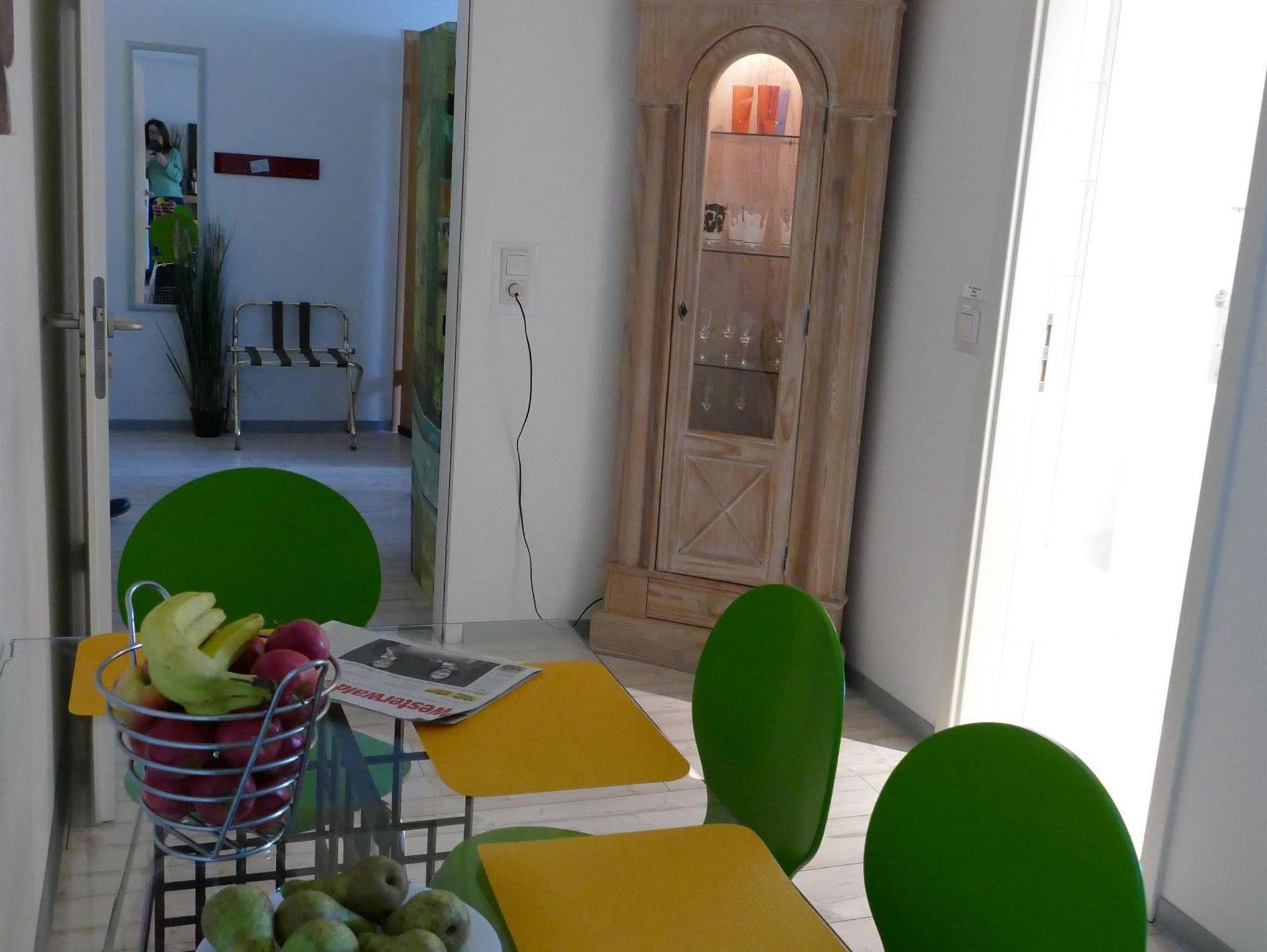 Die Ferienwohnung PARIS hat 54 m² Wfl.in moderner Ausstattung. Sie besteht aus einem großzügigen Wohn-/Schlafraum mit bis zu 4 Einzelbetten (mit den Maßen L x B 2 m x 0,90 m), die für Paare individuell arrangiert werden können, begehbarerem Kleiderschrank, Großbild-TV und kostenlosem W-LAN. Der Wohn-/Schlafraum hat elektrische Rolläden. Die Wohnküche hat Vollausstattung mit Ceranfeld und Backofen, Spülmaschine, Kühlschrank mit Tiefkühlfach, Mikrowelle, Toaster, Wasserkocher und Kaffeemaschine und komplettem Geschirr für 6 Personen, sowie einem großzügigen Bad mit Dusche/WC/Handwaschbecken, Waschmaschine mit integriertem Trockner und Wäscheständer. Die Wohnung ist ebenerdig über unsenen Innenhof zu begehen.