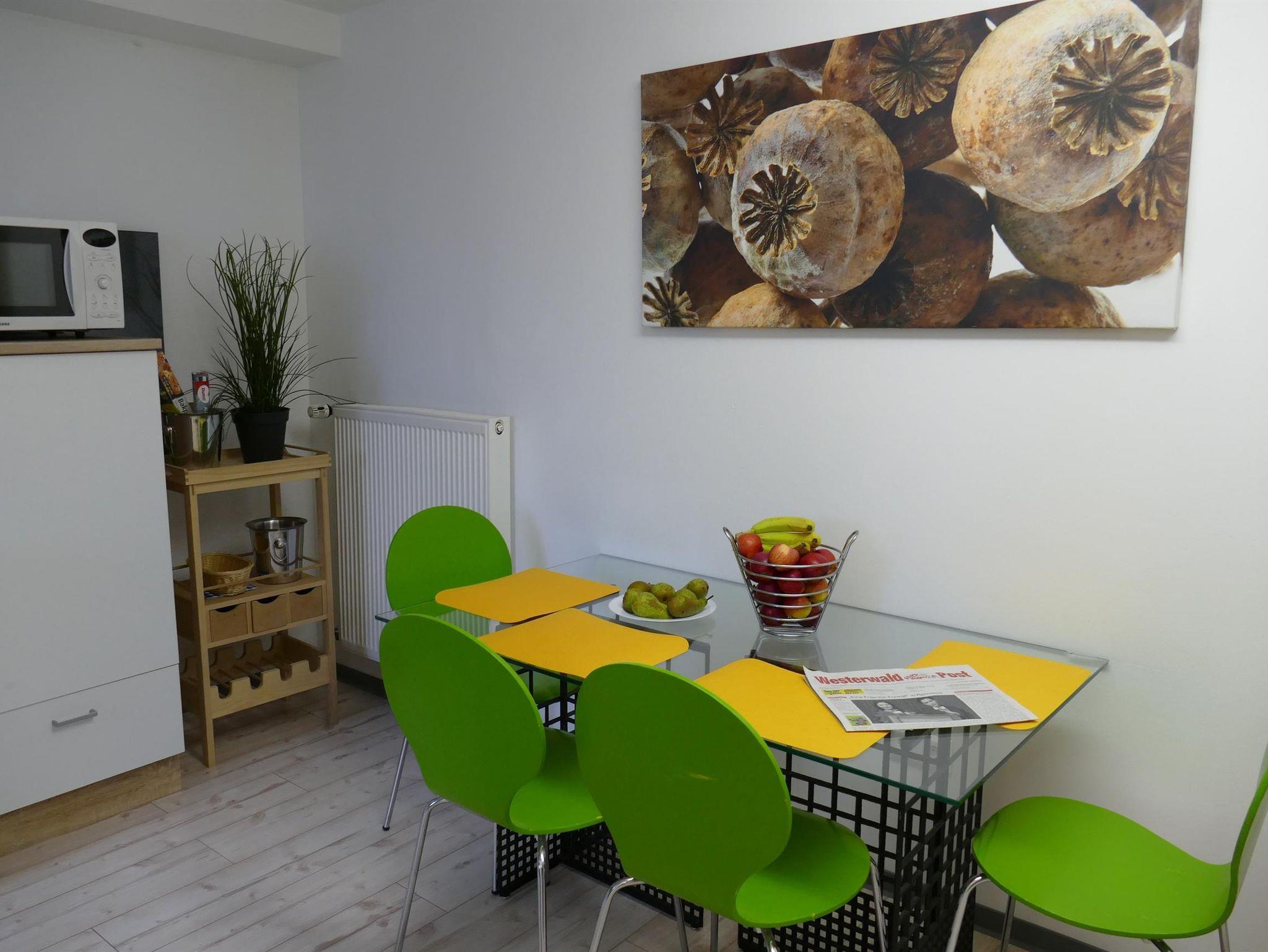 Es steht im Hofbereich eine Terrasse mit Bestuhlung und mit Grillmöglichkeit zur Verfügung. Es sind Parkplätze auch für größere Autos (Sprinter) auf dem eigenen Grundstück vorhanden.