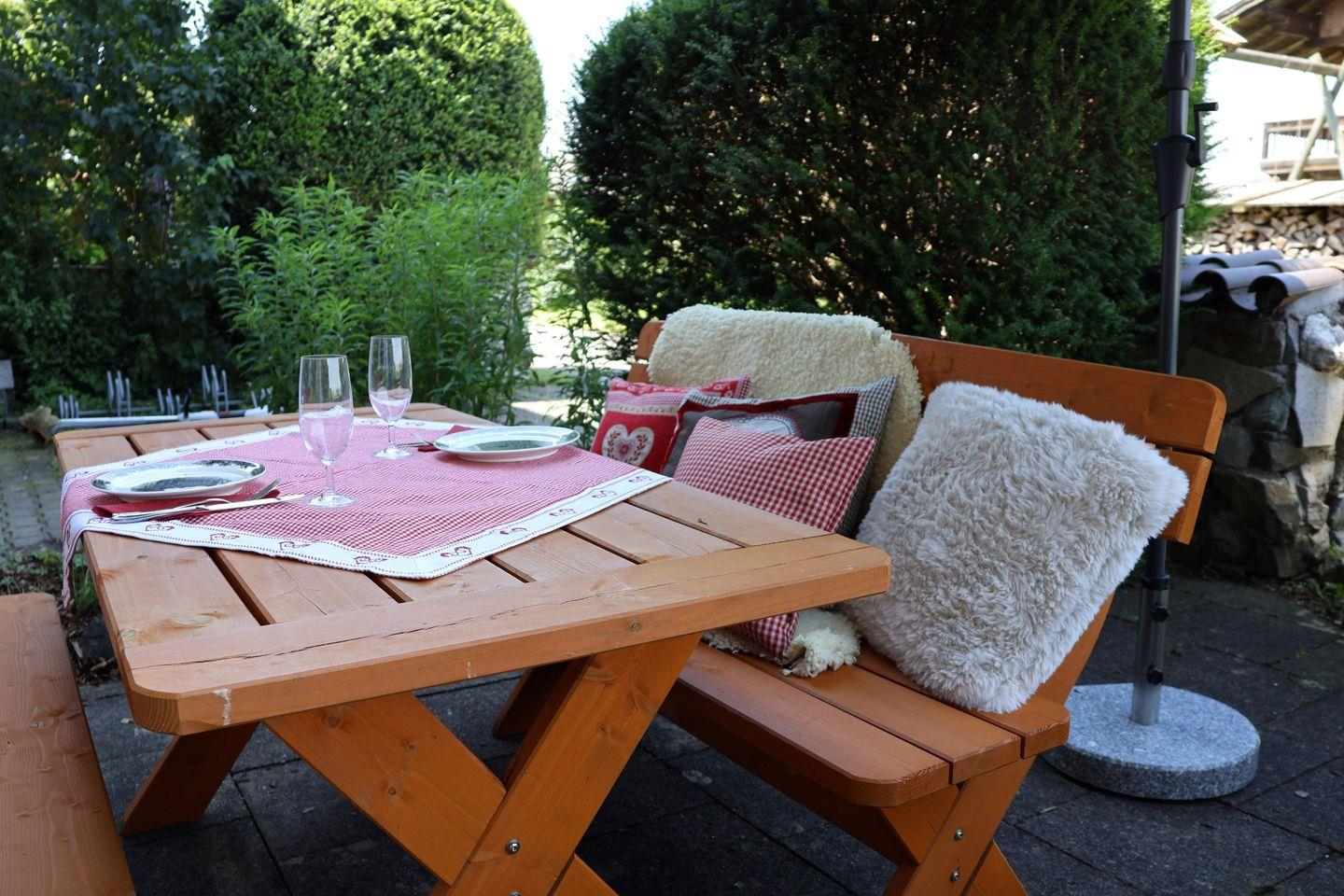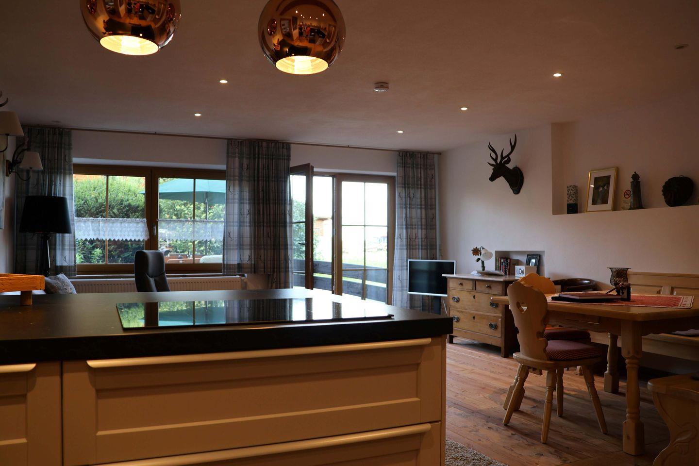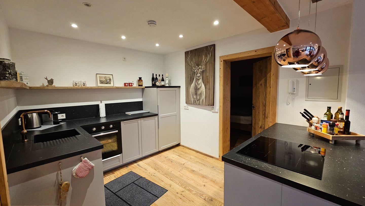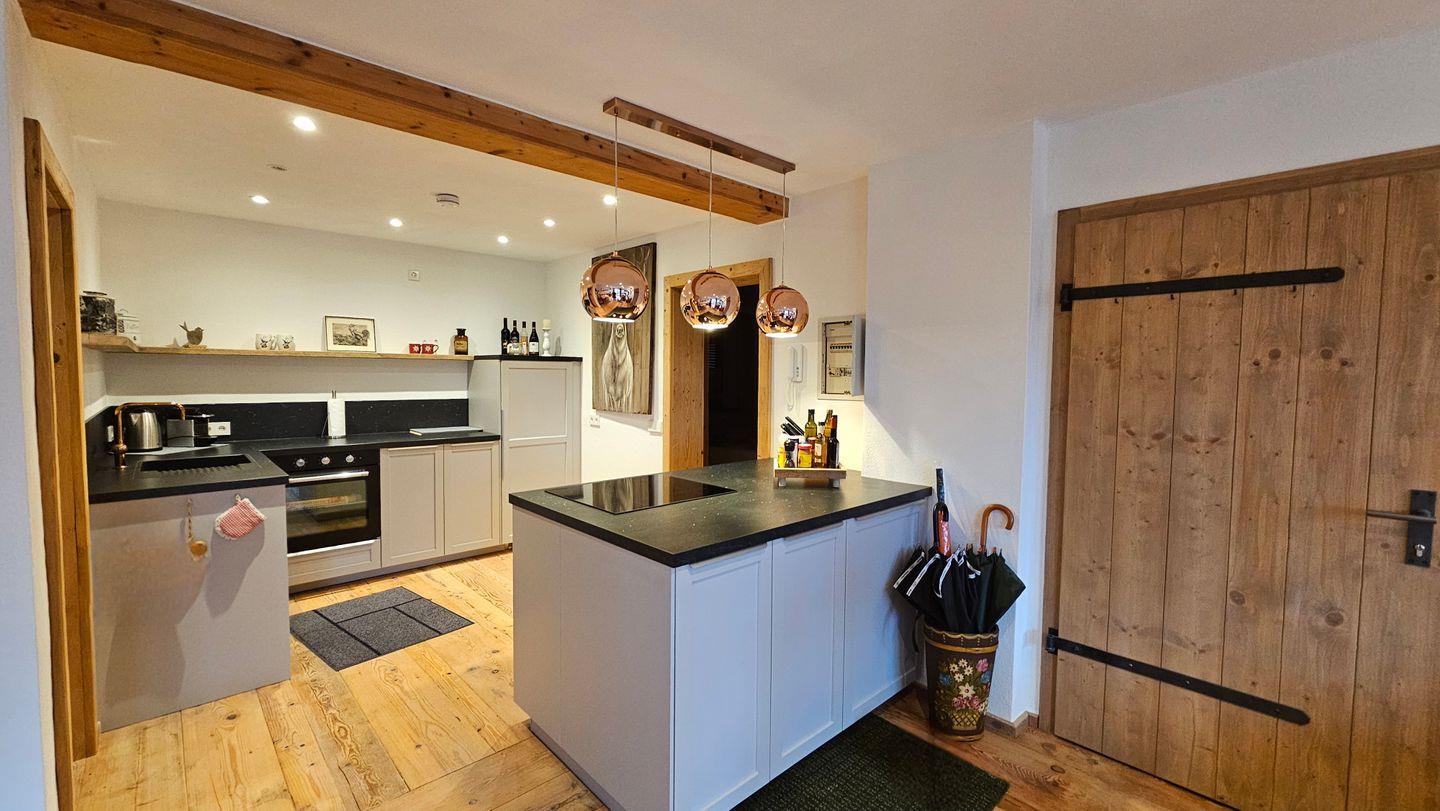 Die Wohnung überzeugt durch ihre offene und freundliche Gestaltung. Der großzügige Wohnbereich mit einem bequemen Sofa und einer Sofaecke lädt zum Entspannen ein. Hier finden Sie auch einen Essbereich, an dem Sie unvergessliche Mahlzeiten genießen können. Die voll ausgestattete Küche mit modernen Geräten wie einem Cerankochfeld, einem Backofen, einer Spülmaschine und einer Nespresso-Espressomaschine lässt keine Wünsche offen. Kochen Sie Ihre Lieblingsgerichte und genießen Sie diese auf der Terrasse, die mit Gartenmöbeln und einem Sonnenschirm ausgestattet ist – der perfekte Ort, um die frische Bergluft zu genießen.