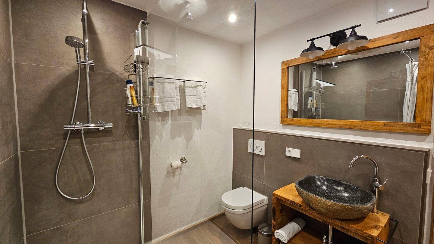 Ein modernes Badezimmer mit Dusche und Badewanne sorgt für zusätzlichen Komfort. Die Wohnung ist nicht nur allergikergeeignet, sondern auch eine Nichtraucherunterkunft, um eine gesundheitlich unbedenkliche Umgebung zu gewährleisten. Rollstuhlfreundlichkeit ist ebenfalls ein Plus, sodass sich jeder Gast sofort wohlfühlt. Mit einer Zentralheizung und einem TV sind Sie bestens ausgestattet, um auch an kühleren Tagen einen angenehmen Aufenthalt zu haben. WLAN ist ebenfalls verfügbar, sodass Sie stets online bleiben können.
