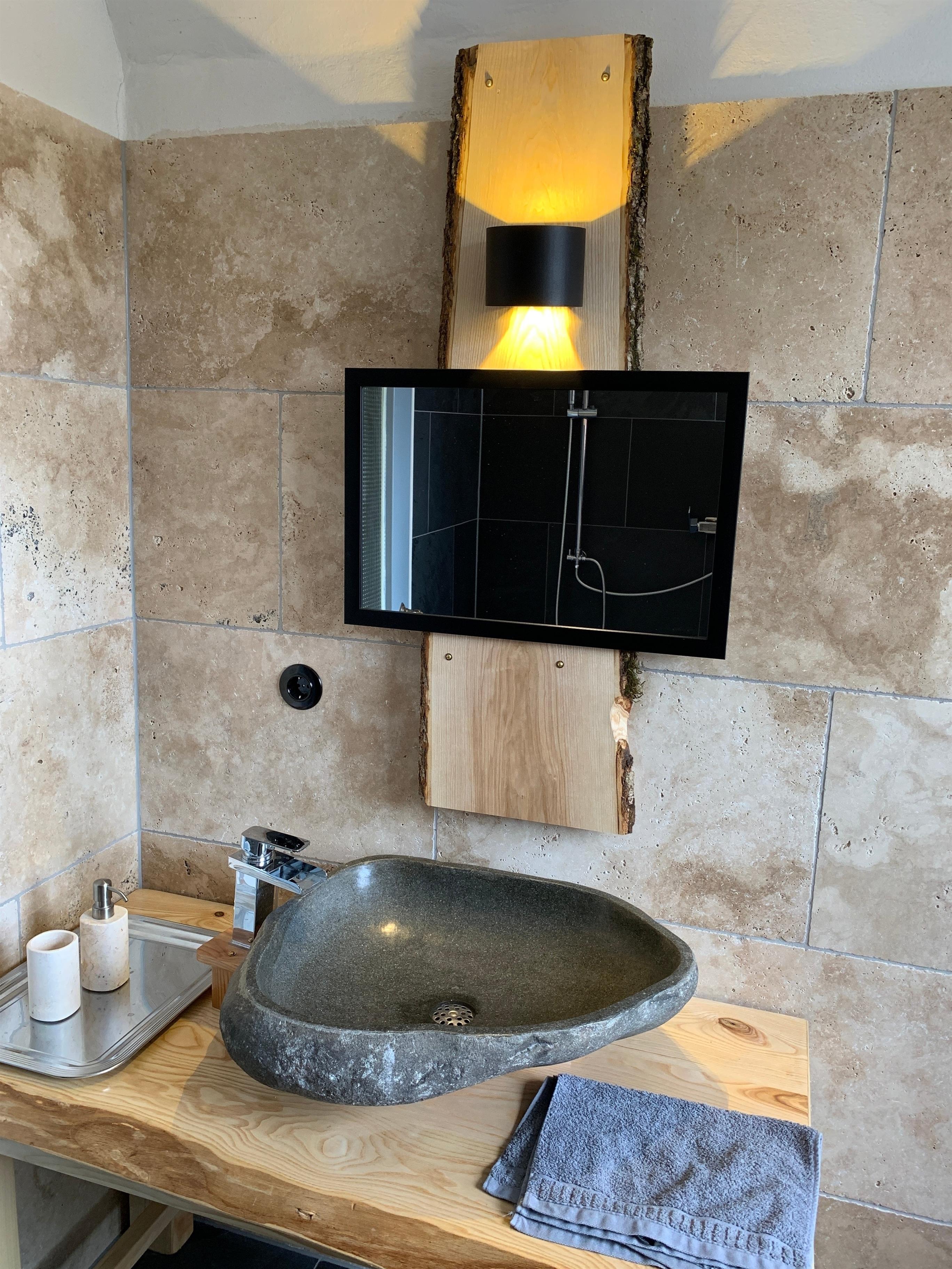 Zum stilvoll eingerichteten Badezimmer, dass Sie gemeinsam mit dem "Giordano Bruno" und dem "Gerolamo Cardano" benutzen, erhalten Sie einen Korb mit allem nötigen, wie Handtücher, Seife. Alles wird selbstverständlich bei Bedarf täglich ausgetauscht.