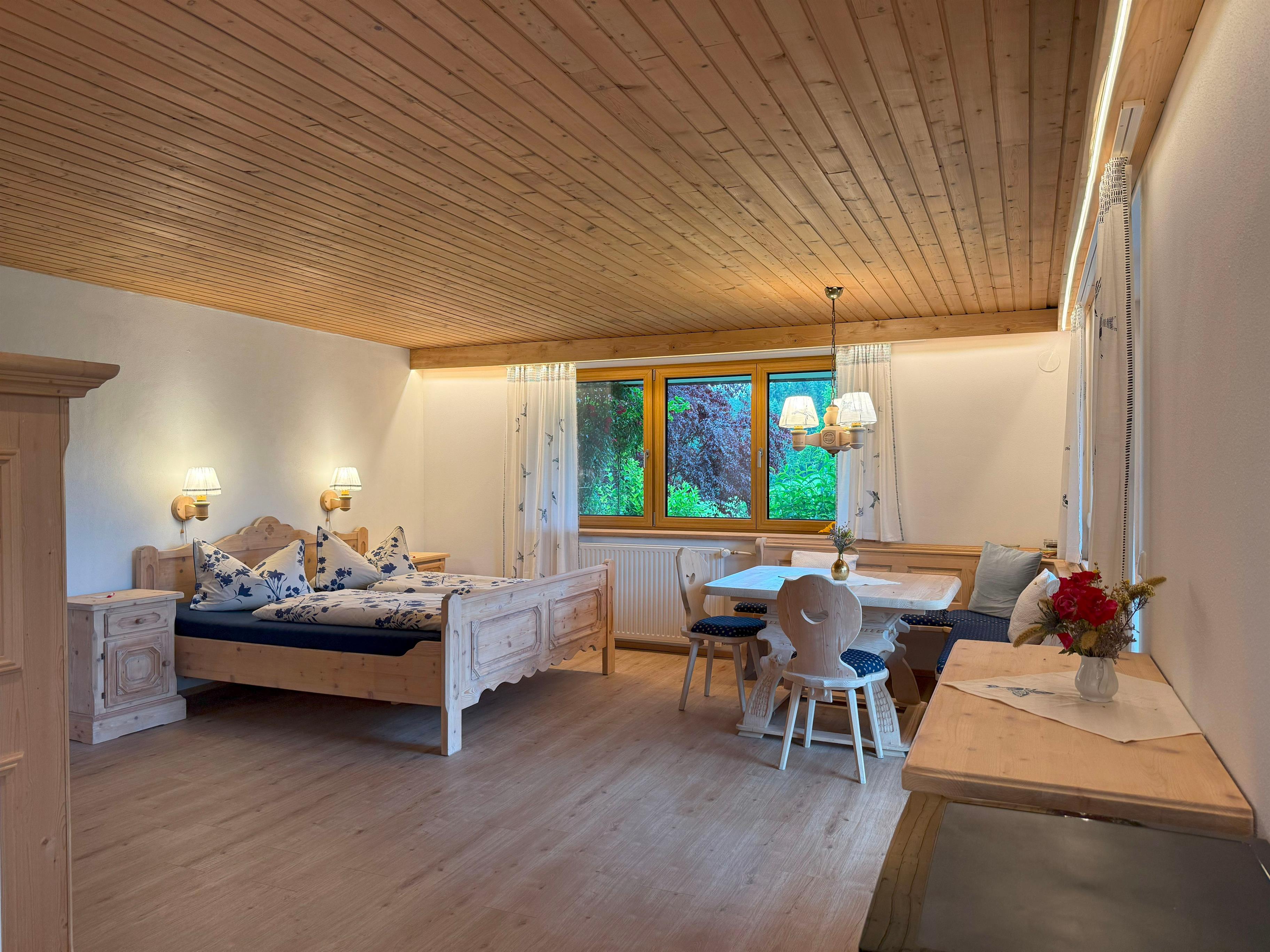 Das Appartement liegt mit einem schönen Blick auf die Ammergauer Alpen. Eichhörnchen springen vor dem Fenster auf und ab, tagsüber ziehen die Rotmilane ihre Kreise durch den Himmel und mit etwas Glück sehen Sie auch Rehe oder sogar einen Hirsch über die Wiesen springen. Ganz in der Nähe des Hauses ist die Königsstraße, auf der schon König Ludwig II zwischen seinen Schlössern Linderhof und Neu- schwanstein die wundervolle Gegend genoss.