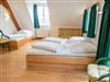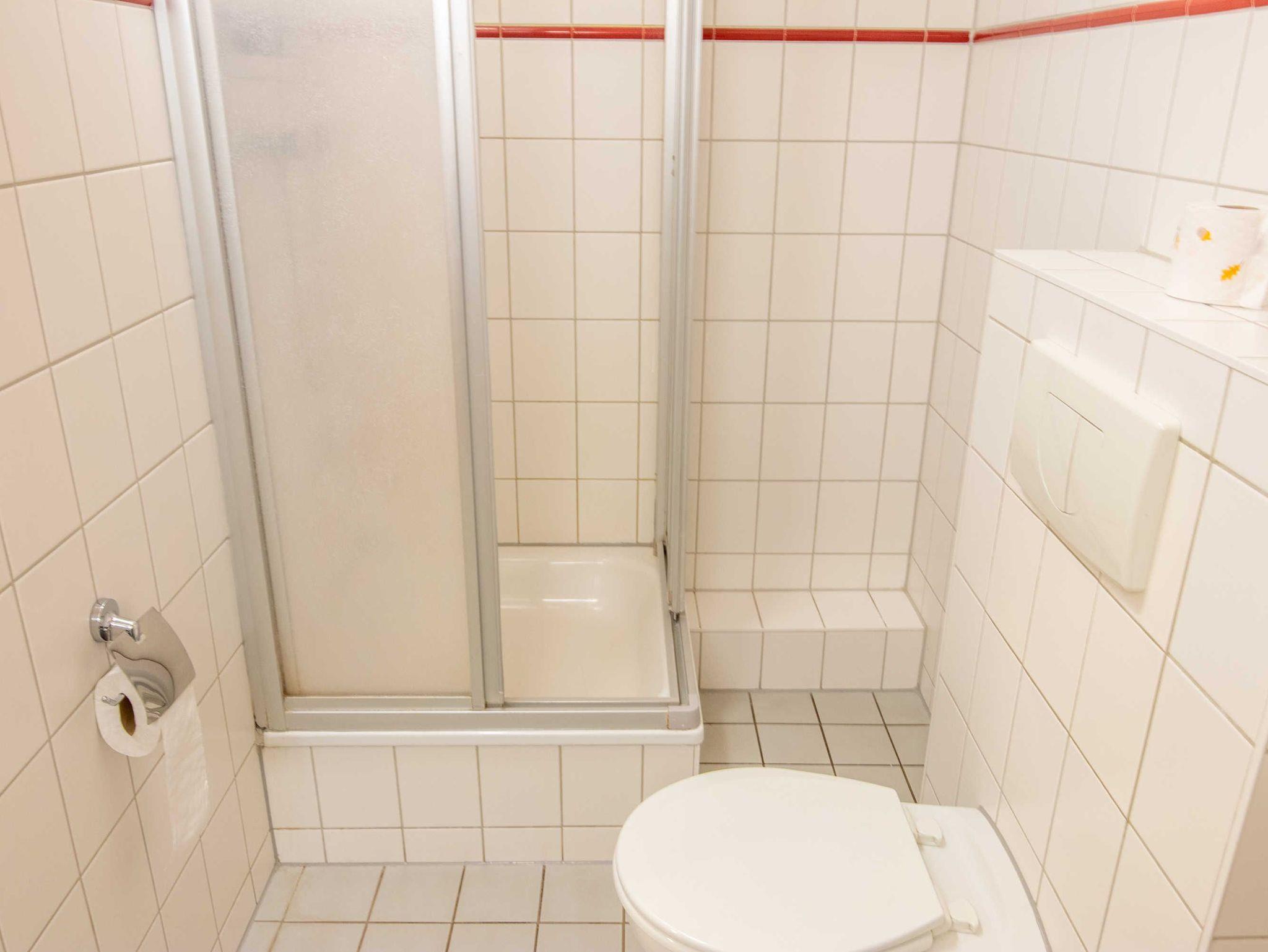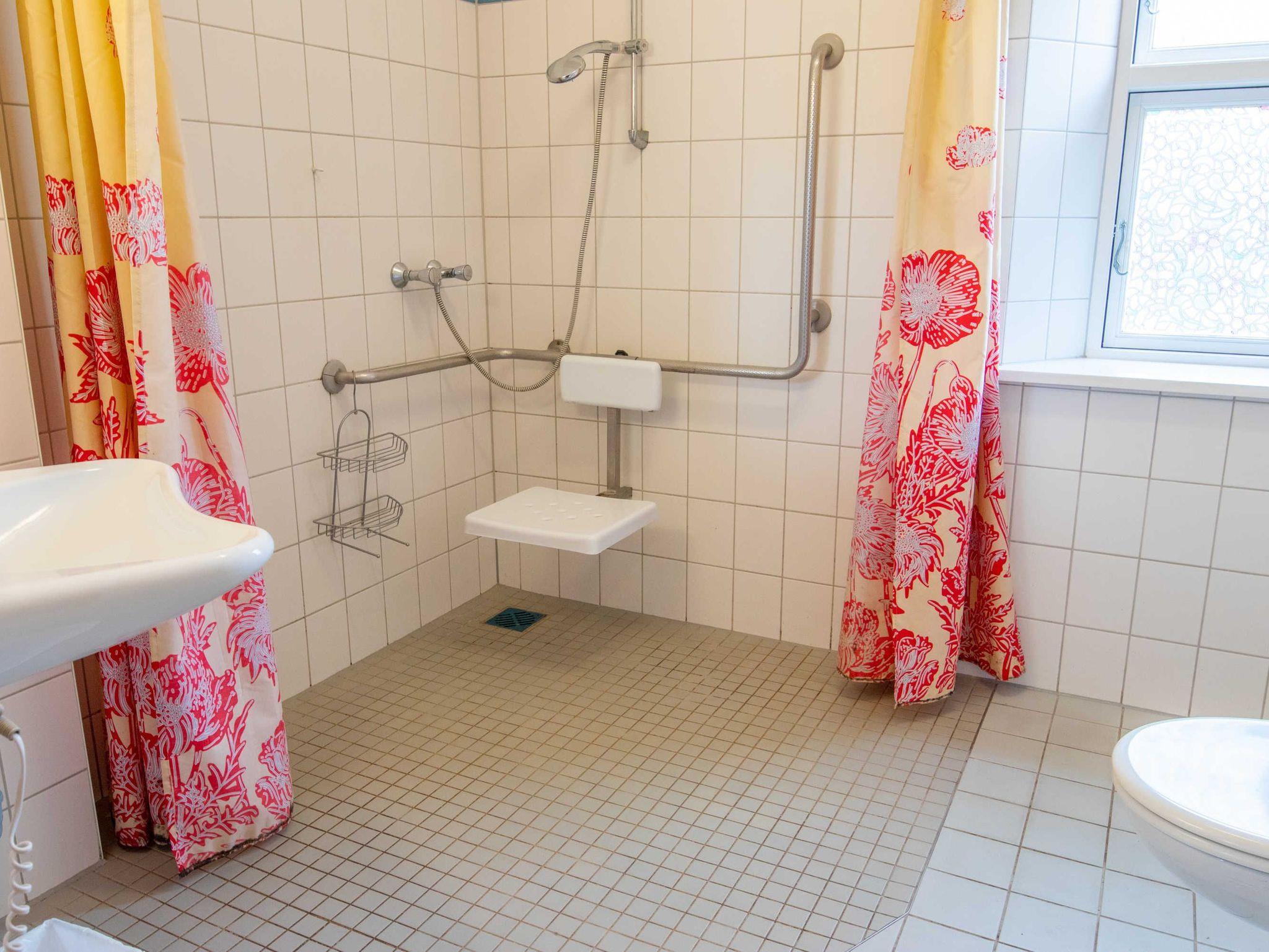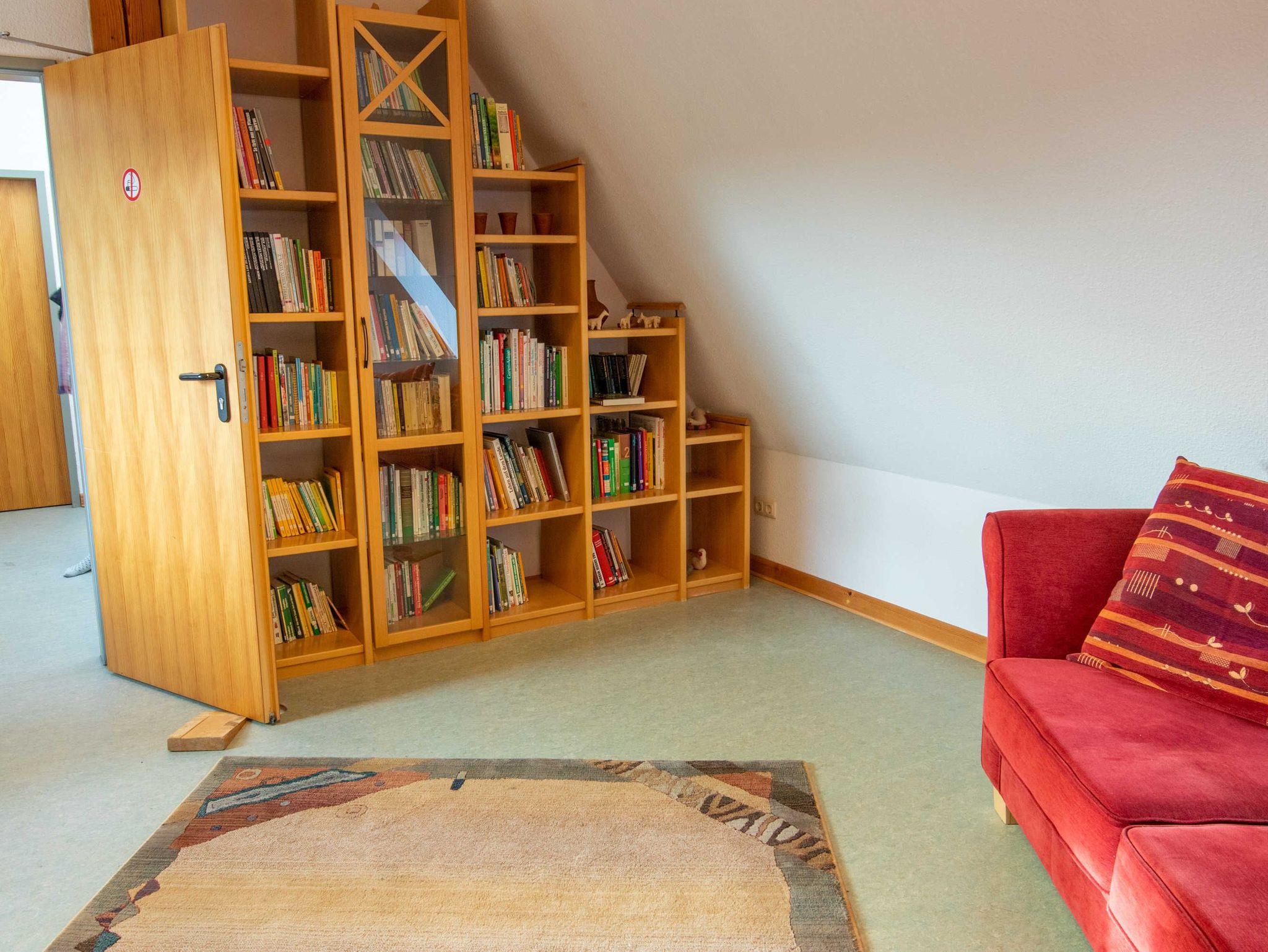 Im 3-stöckigen 170 m² großen mit Lehm ausgefachteten Fachwerkhaus ist Platz für bis zu 14 Personen. Die vordere Eingangstür ist über eine Rampe erreichbar. Im Erdgeschoss des Ferienhauses befindet sich der große Aufenthaltsraum mit vielen Sitzmöglichkeiten und einem TV. Die voll ausgestattete offene Küche mit einem Herd, Backofen, Kühlschrank und einer Spülmaschine. 2 Gäste-WC vervollständigen diesen Bereich. Außerdem befindet sich im Erdgeschoss ein behindertengerechtes Schlafzimmer (zwei getrennte Betten, 90x200cm) mit rollstuhlgerechtem Badezimmer, welches mit einer befahrbaren Dusche, Duschsitz, Waschbecken und WC eingerichtet ist. Über eine Treppe erreicht man die erste Etage. Dort befinden sich die vier weiteren Schlafzimmer (1x Zweibettzimmer, 2x Dreibettzimmer, 1x Vierbettzimmer, jeweils 90x200). Zu jedem Schlafzimmer gehört ein Bad mit Dusche, Waschbecken und WC, zwei davon sind über den Flur erreichbar. Ein Zustellbett steht zusätzlich zur Verfügung. Im Dachgeschoss gibt es einen weiteren Aufenthaltsbereich mit Sitzmöglichkeiten, Büchern und Flachbild-TV. Am hinteren Ausgang schließt sich eine Terrasse mit Holzbänken, Grillmöglichkeit, Feuerstelle und eine große Wiese an.
