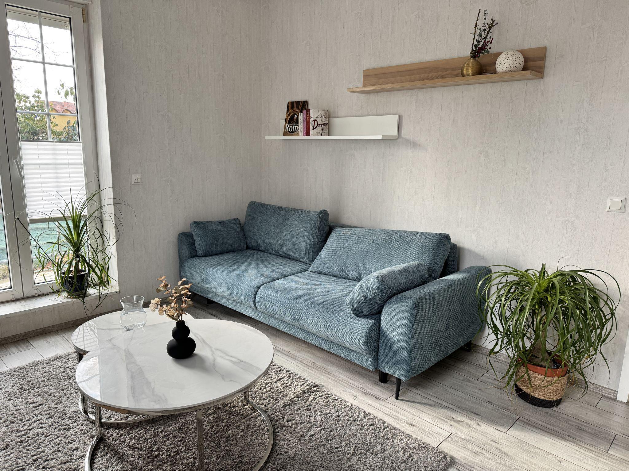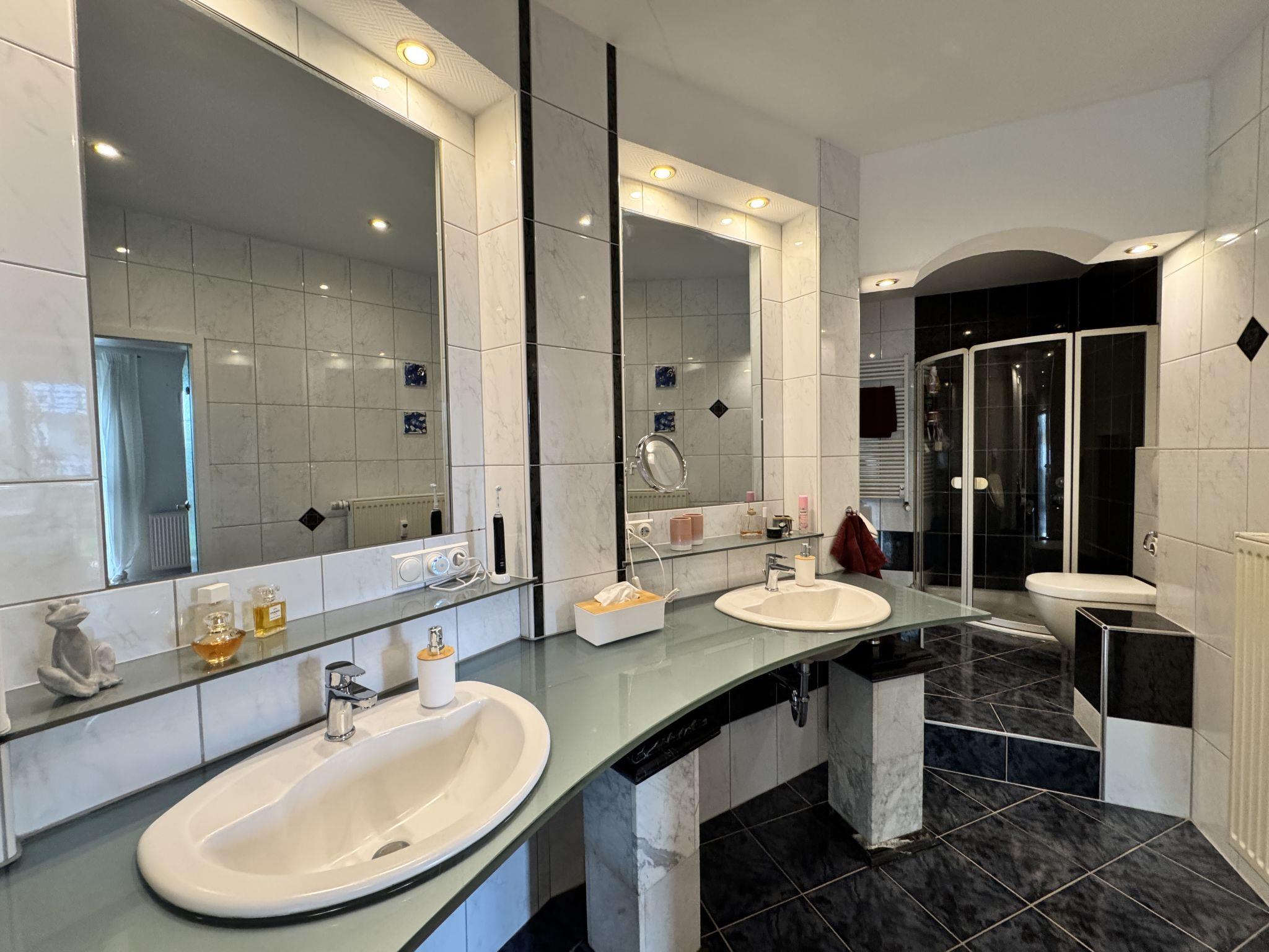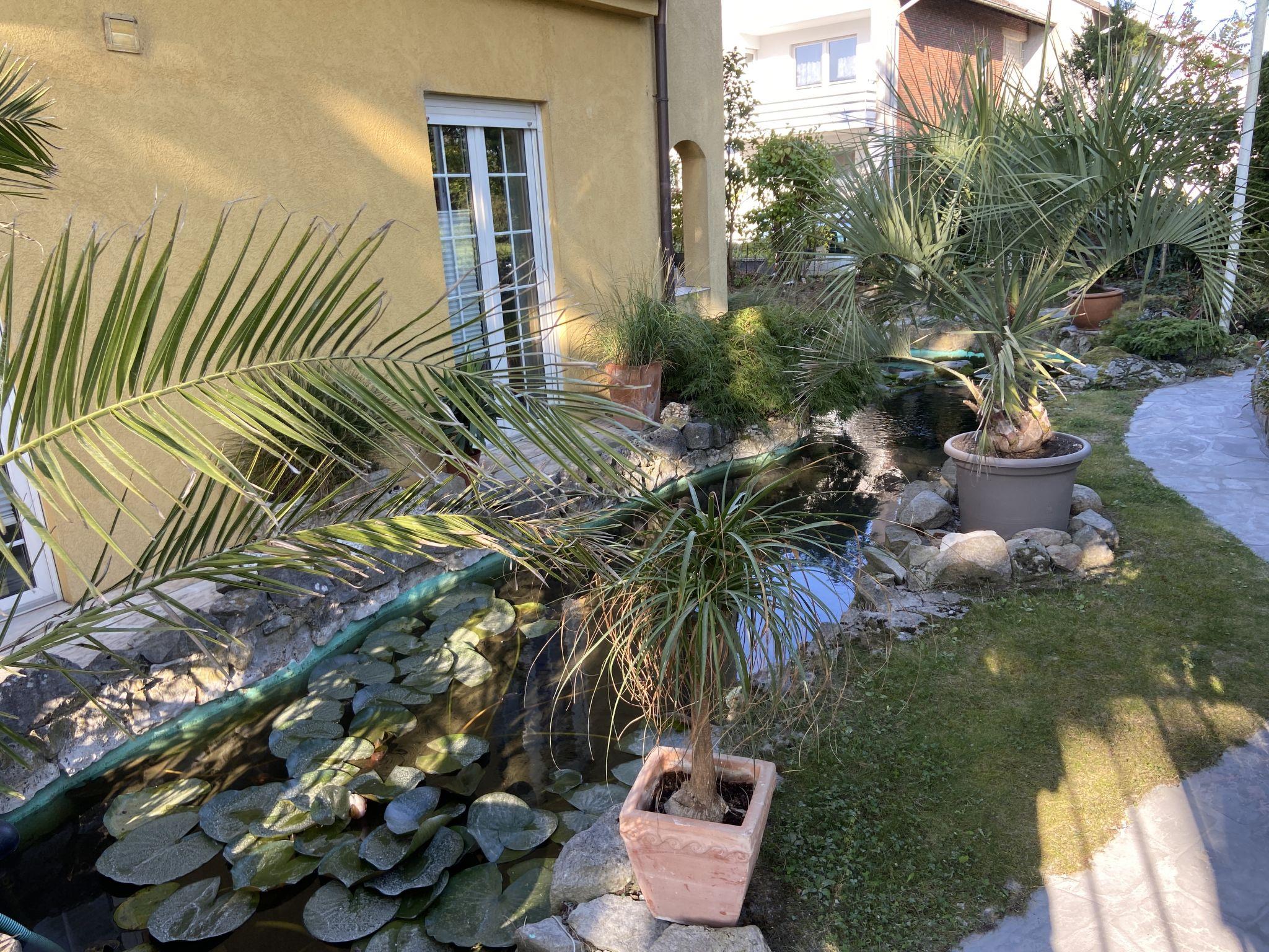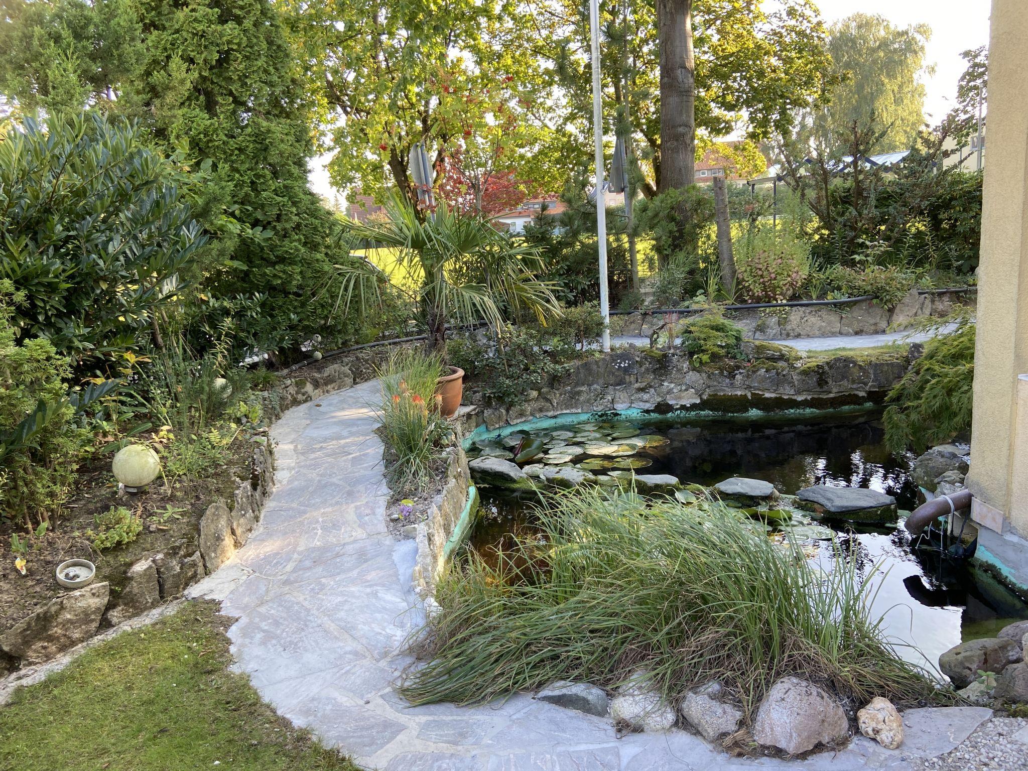 Apartment house. On the outskirts, 1.5 km from the centre, in a quiet position in the residential district. Private: property 100 m2, lawn for sunbathing, pond, parking at the house. Supermarket 200 m, restaurant 400 m, bus stop 50 m, railway station 1.5 km, outdoor swimming pool 2 km, indoor swimming pool 8 km, lake Schiedersee 9 km. Golf course (18 hole) 14 km, tennis 2 km. Please note: the owner lives in the same residence.