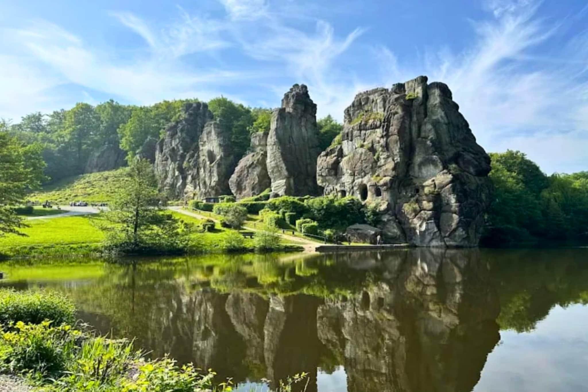Velkommen til dette hyggelige og gennemtænkte feriehus i Steinheim, beliggende i hjertet af regionen Østwestfalen-Lippe og Weserbergland. Fordelt over to etager og med omkring 75 m² boligareal, kan huset komfortabelt rumme op til seks gæster, hvilket gør det ideelt for familier, par eller venner, der rejser sammen. Det separate anneks er indrettet som et lille, selvstændigt feriehus, der tilbyder privatliv og et fredeligt tilflugtssted, hvor I virkelig kan slappe af. Huset er bygget med bæredygtighed i tankerne og har hampisolering og lerpuds af høj kvalitet, hvilket skaber et naturligt og sundt indeklima, som du vil mærke i det øjeblik, du træder indenfor. Indenfor er atmosfæren varm, rolig og praktisk. Stueetagen byder på en indbydende opholdsstue med en dobbelt sovesofa og tv, perfekt til afslappede aftener, samt et komfortabelt soveværelse med en dobbeltseng. Badeværelset er et sandt højdepunkt, komplet med et dampbruser til afslapning efter en dag udendørs. En børneseng og en høj stol gør hjemmet særligt familievenligt. Ovenpå er det lyse køkken fuldt udstyret til nem madlavning og fælles måltider i ferien, mens det andet soveværelse tilbyder fleksible sovemuligheder med en dobbeltseng eller to enkeltsenge. Udenfor inviterer en terrasse med havemøbler og en grøn have dig til at nyde frisk luft og rolige øjeblikke, mens parkering på stedet tilføjer hverdagens bekvemmelighed. Den fredelige beliggenhed gør dette hjem til en vidunderlig base for lange gåture og cykelruter gennem det omkringliggende landskab. Udforsk de bølgende bakker og naturskønne stier i Weserbergland, besøg charmerende nærliggende byer, eller nyd kulturelle og naturfokuserede dagsture i regionen. Uanset om du søger udendørs eventyr eller blot et roligt sted at genoprette forbindelsen, tilbyder dette feriehus i Steinheim en afslappet og bæredygtig flugt tæt på naturen.