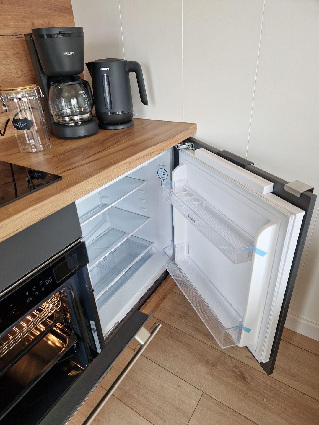 Wohnbereich befindet sich eine komplett ausgestattete Küchenzeile (Spülmaschine,
