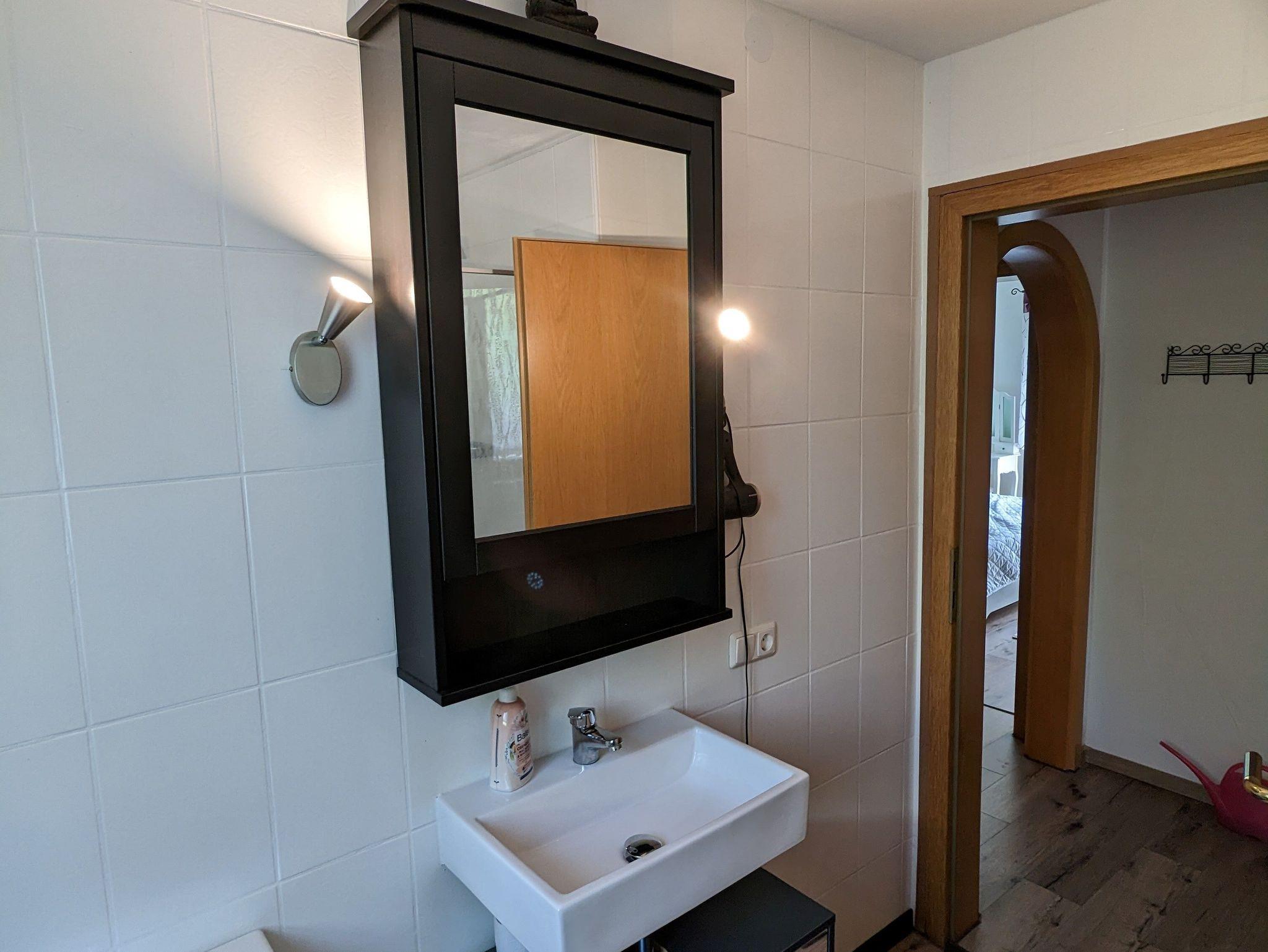 Zugang zur gemütlichen Terrasse, mit tollem Ausblick über das Esszimmer möglich. Kleines Bad mit ebenerdiger großer Dusche.