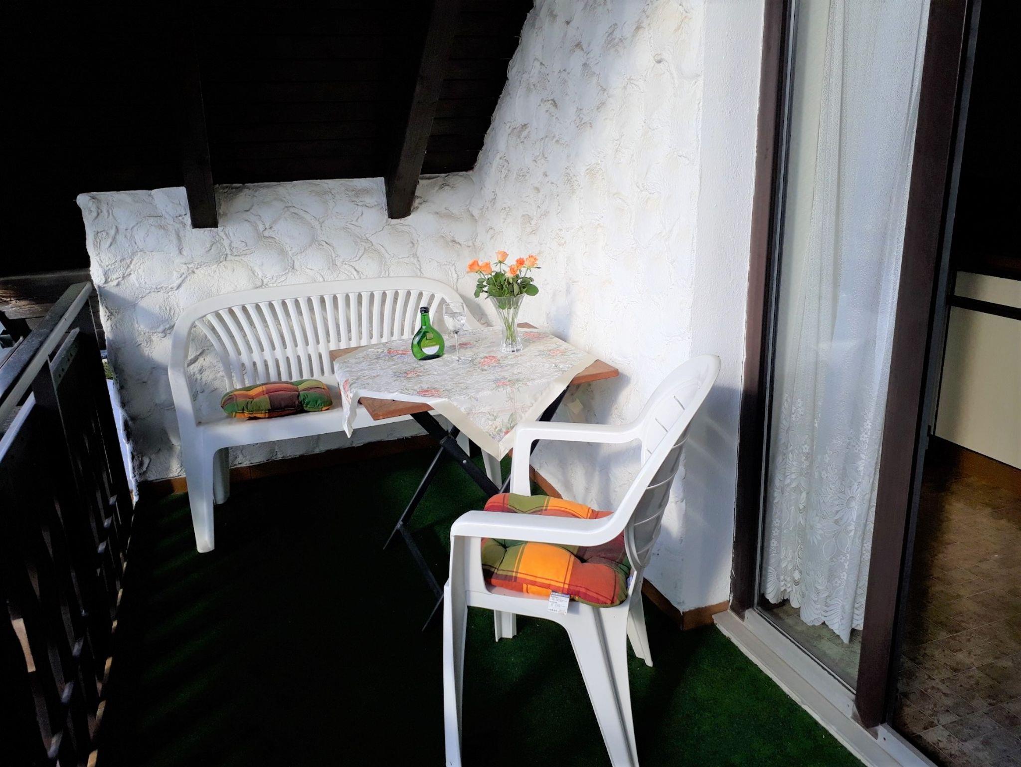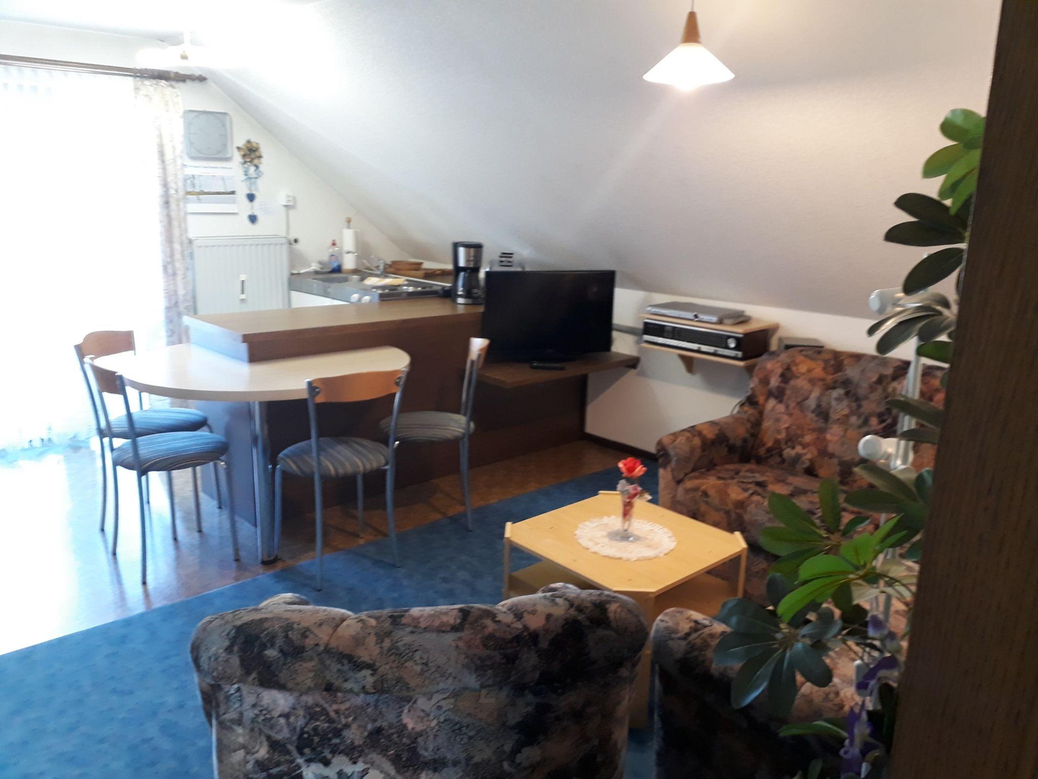 Im gemütlichen Wohnraum sitzen Sie auf der bequemen Polster-Eckgruppe vor dem Fernseher (Kabel). Wenn Sie auch im Urlaub gerne selbst ein schmackhaftes Essen oder eine rustikale Brotzeit zubereiten möchten, die komplett mit 2-Plattenherd, Mikrowelle, Kühlschrank, Kaffeemaschine, Eier- u. Wasserkocher, sowie Toaster voll ausgestatte Kleinküche wird Ihre zauberhafte Kreativität unterstützen. Ihre Tiefkühlkost lagern Sie in einer separaten Frostbox. Das Essen lassen Sie sich am halbrunden Essplatz mit Blick auf den Balkon - oder vielleicht auch dort Draußen schmecken. Alles in Allem eine Genießer-Wohnung.