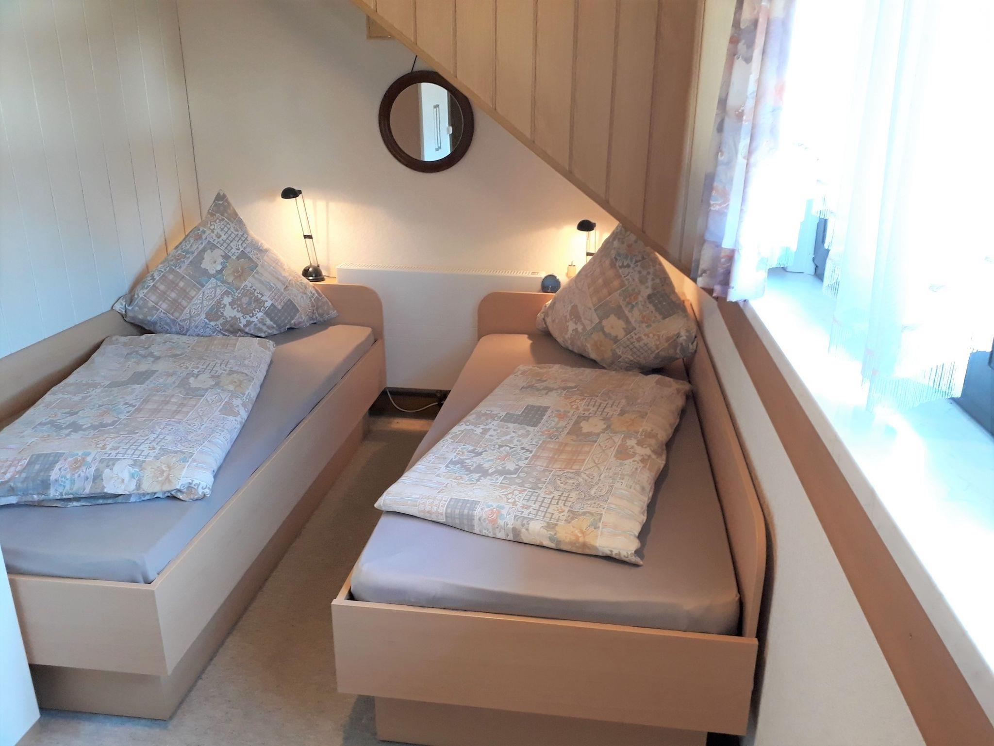 Das weitere, getrennte Schlafzimmer besteht aus 2 Einzelbetten, Kleiderschrank und Schreibplatz.