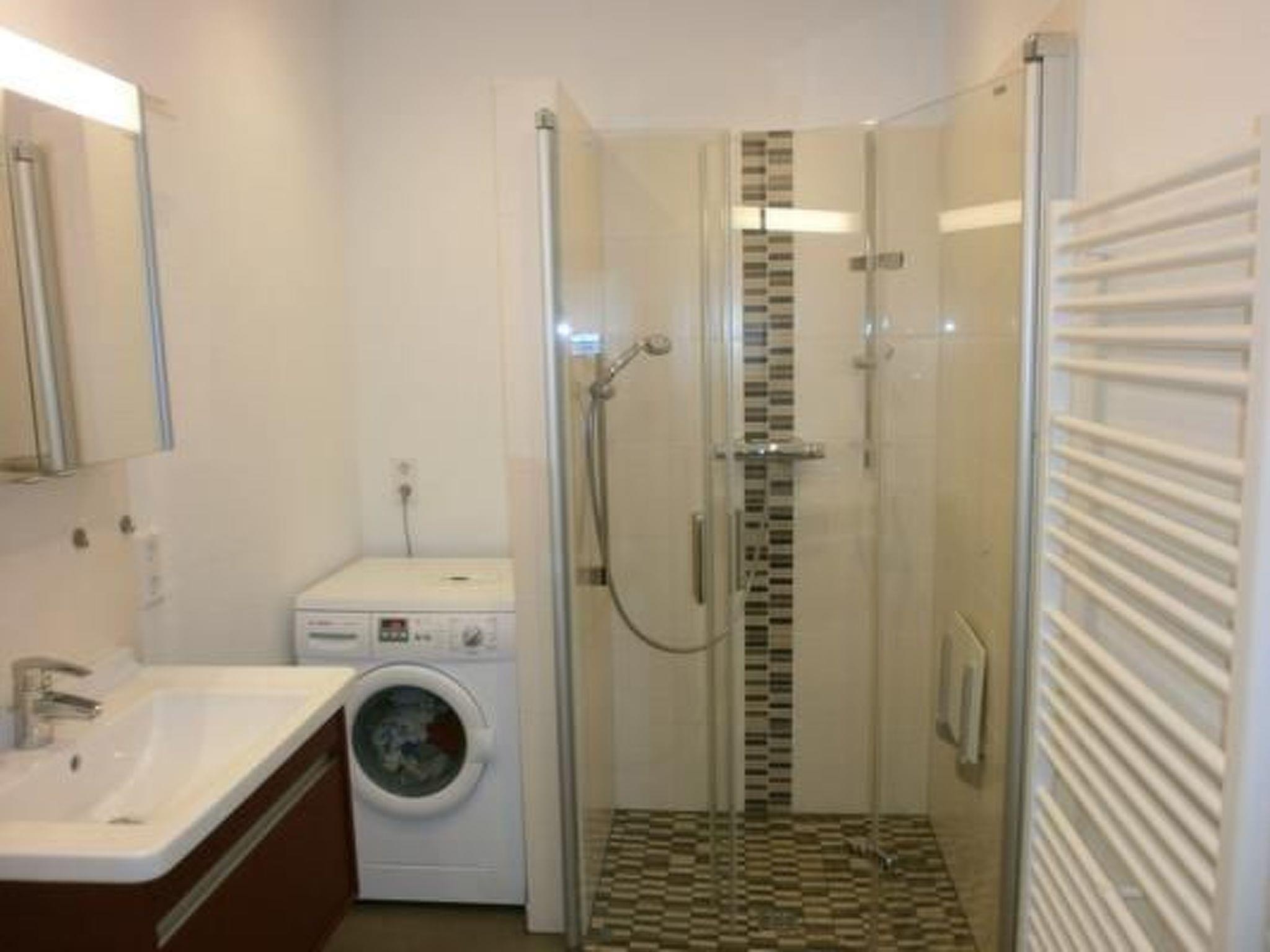 Beautiful, new 2-room flat with open-plan kitchen/living room with dishwasher and freezer. There is a washing machine in the bathroom. Television available. There is a minibar in the entrance area. All windows are fitted with electric external blinds. The bathroom has a walk-in shower with seating.