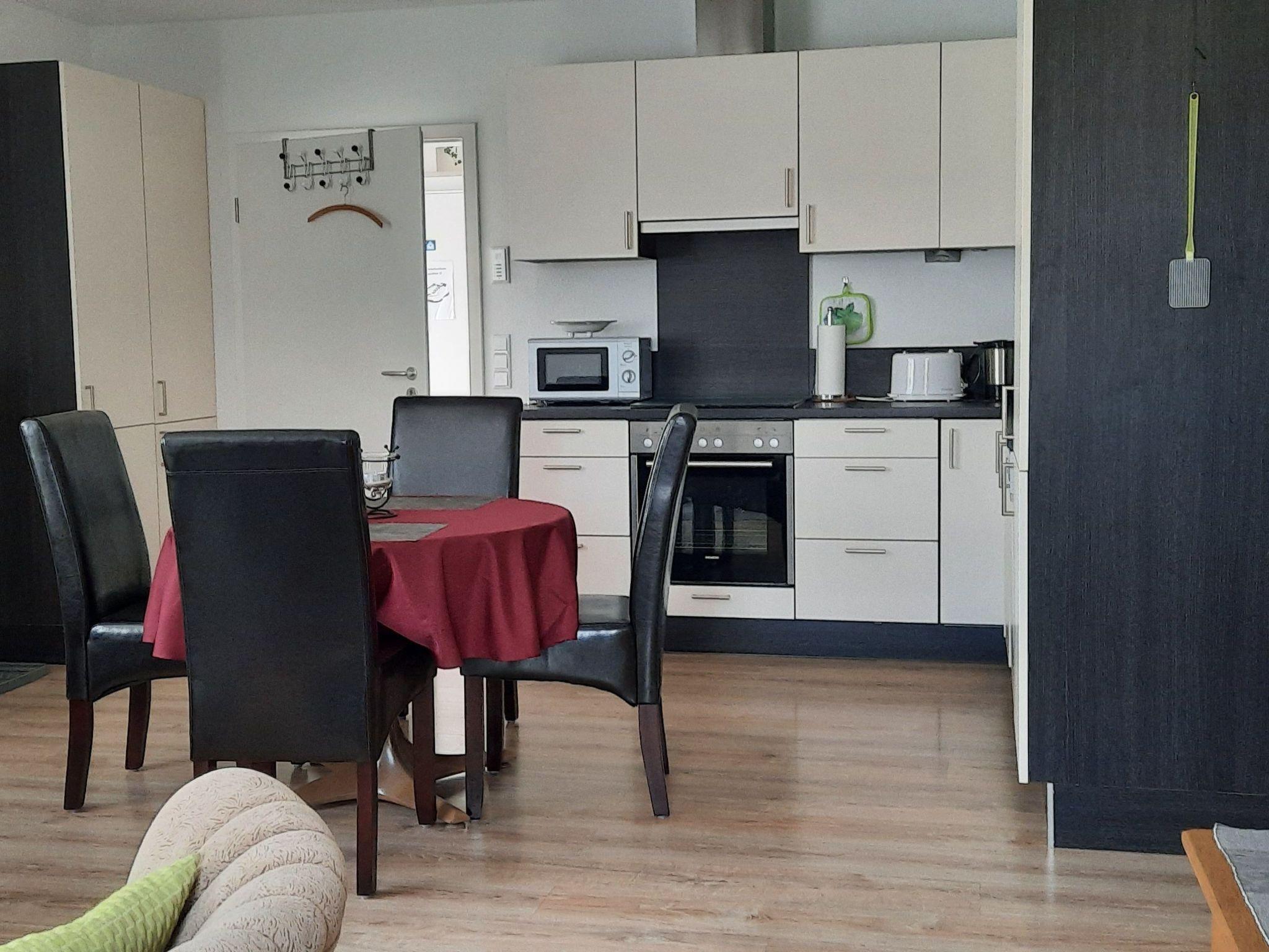 Other kitchen facilities : The kitchen is an open-plan kitchen/living room. There is a dining table with four chairs. A freezer as well as a dishwasher, electric cooker with oven, coffee machine, kettle and toaster are also part of the kitchen equipment. Hoover, iron available.