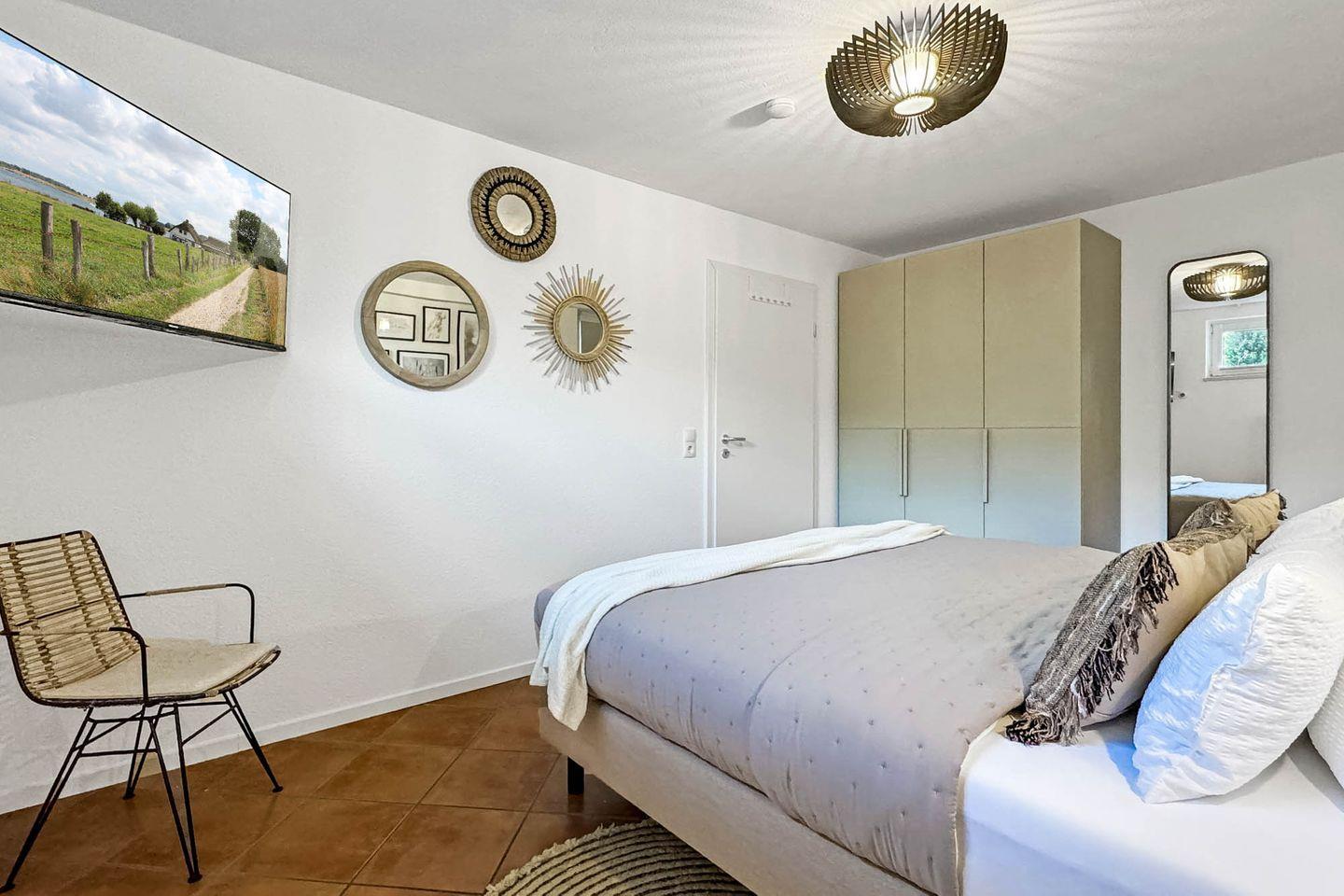 In der unteren Etage befinden sich auch das zweite Schlafzimmer mit Doppelbett und das zweite Bad mit Badewanne und Duscharmatur.