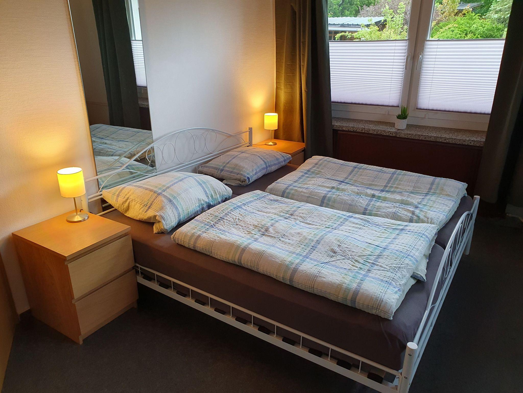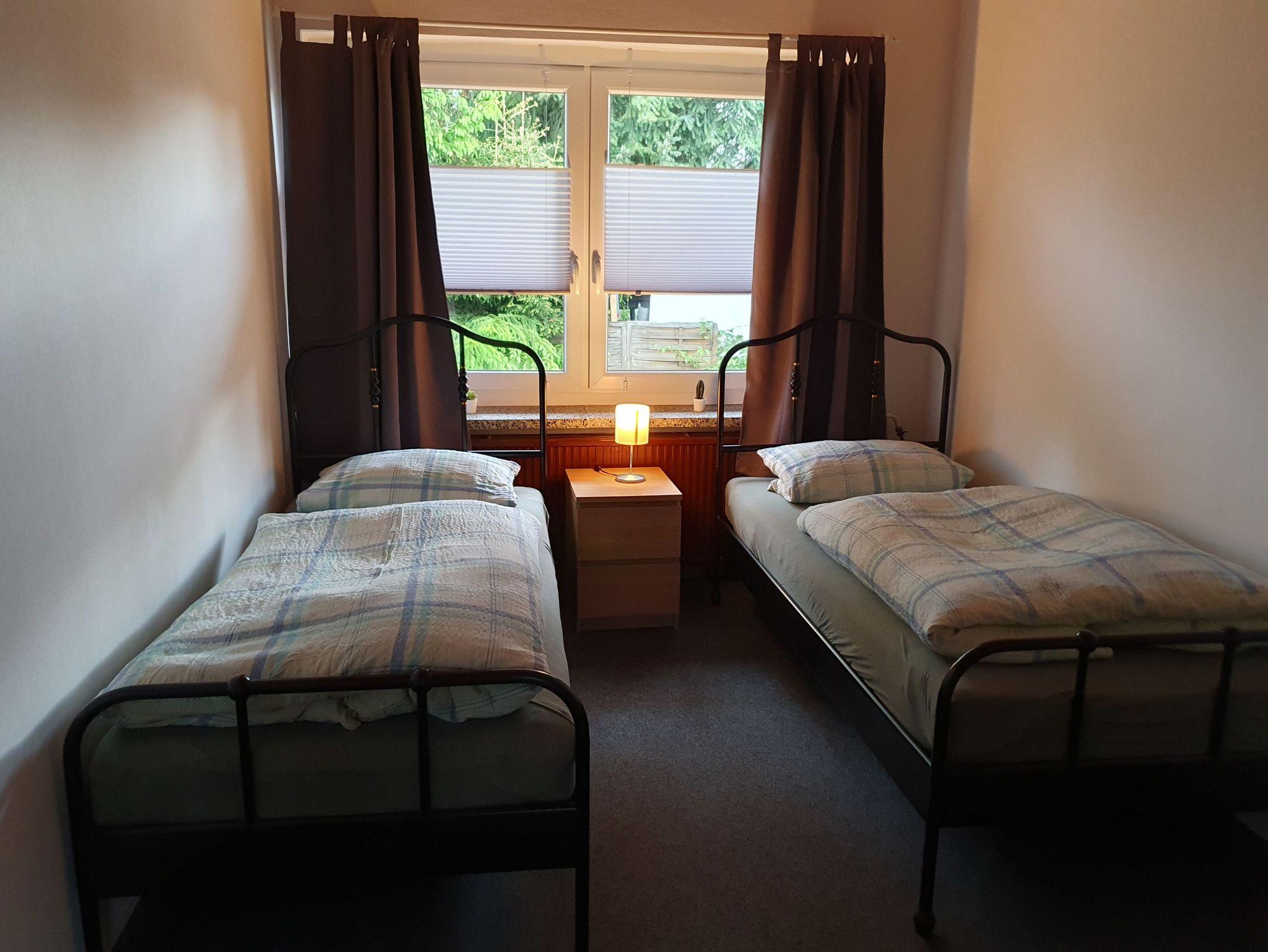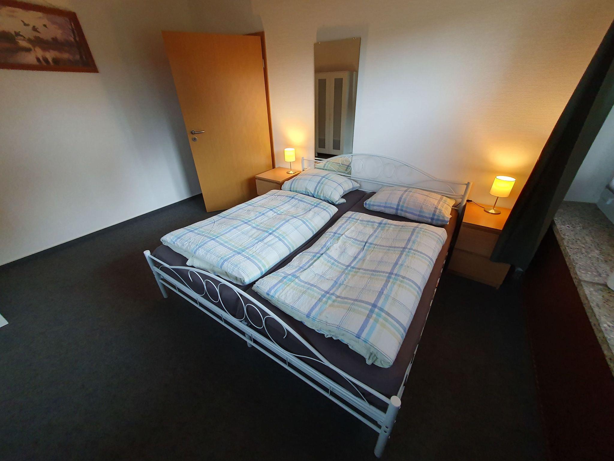 Willkommen in unserer Ferienwohnung, welche sich auf unserem Grundstück befindet und über eine Treppe erreichbar ist. Sie verfügt über zwei Schlafzimmer, Wohnzimmer, Küche und Bad. Schlafzimmer 1 ist mit einem Doppelbett 180X200 cm ausgestattet. Bei Bedarf gibt es auch ein Baby Bett, welches wir Ihnen dazustellen können. Das zweite Schlafzimmer verfügt über zwei Einzelbetten. Das Wohnzimmer ist mit 2 und 3 Sitz Sofa und mit einem TV-SAT Anschluss (inkl. DVD Player) ausgestattet.